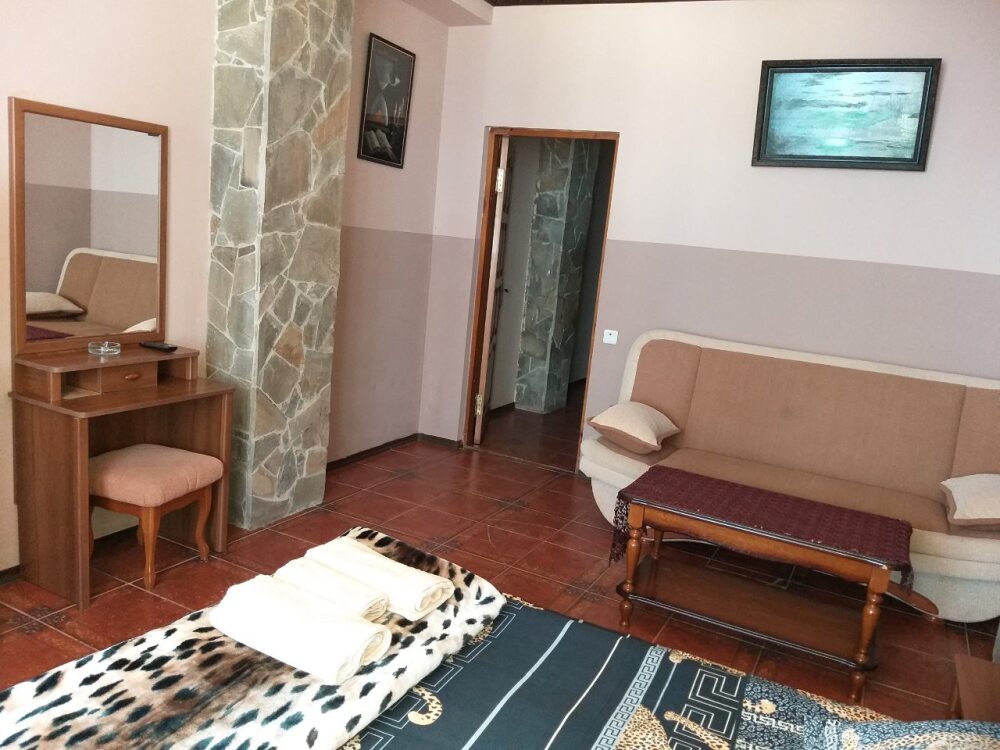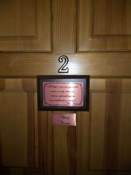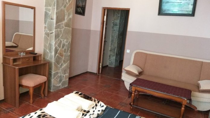 Размещение и инфраструктура: восемь номеров класса «Люкс», «Полулюкс» и «Стандарт», каждый из номеров имеет свое имя: Лев Толстой, Чарли Чаплин, Армен Джигарханян, Бриджит Бардо, Джон Леннон, Пол МакКартни и Аль Пачино. На первом этаже просторная кухня-столовая общего пользования с большим столом и огромным плазменным ТV.