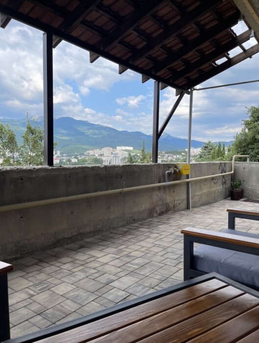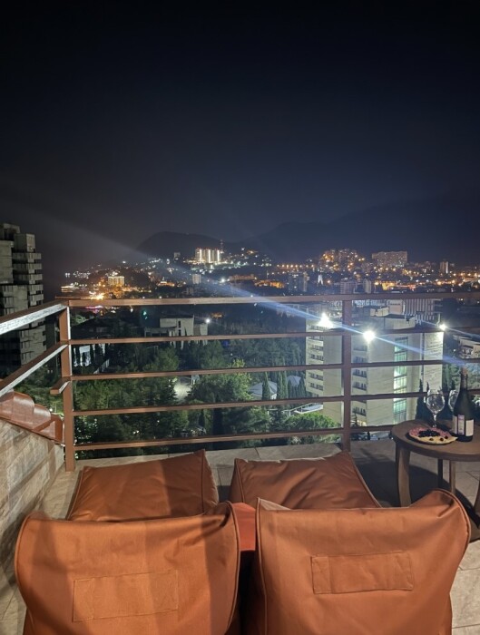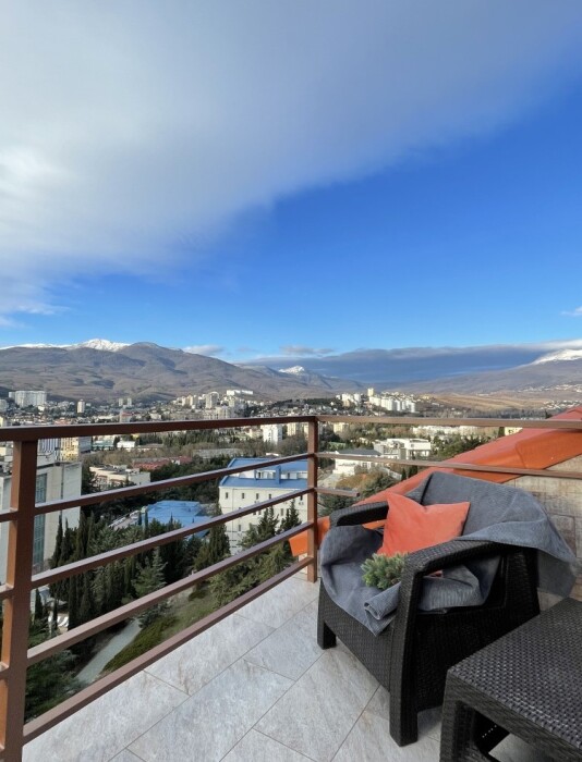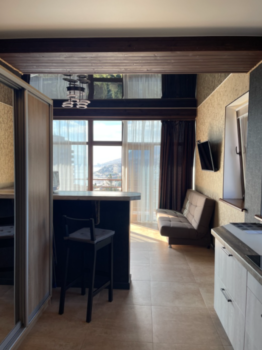 Новый, современный номер с кухней на 2 этаже, с балконом, видом на горы, море, город.