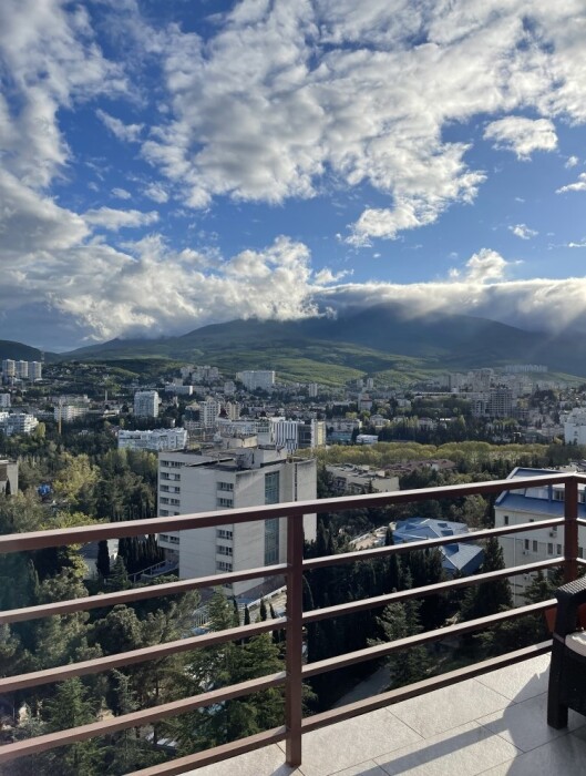 Номер на 2 этаже, со своей кухней, балконом, прекрасным видом на море, горы и город.