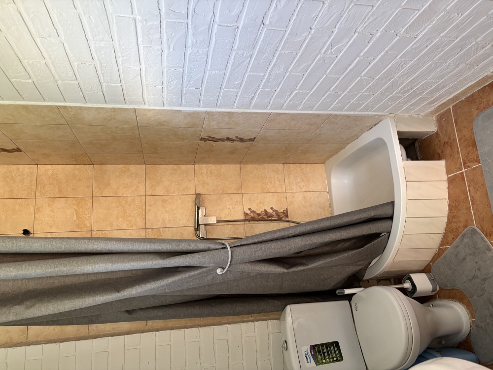 Ванная комната с душем и туалетом на этаже, горячая и холодная вода круглосуточно.