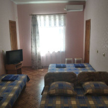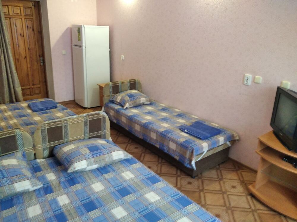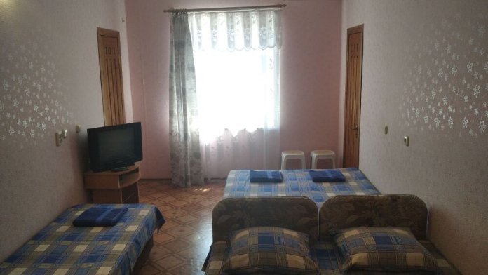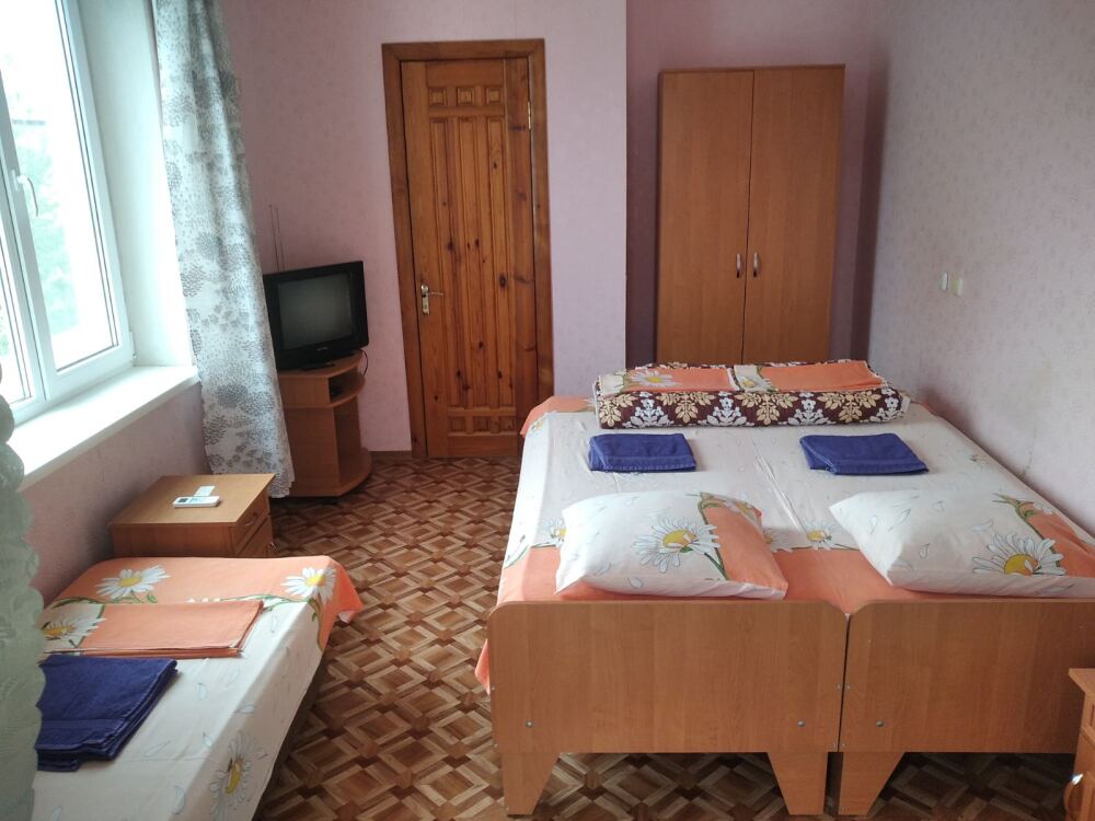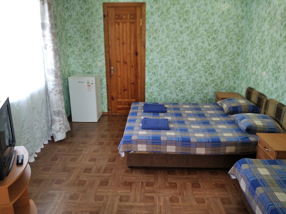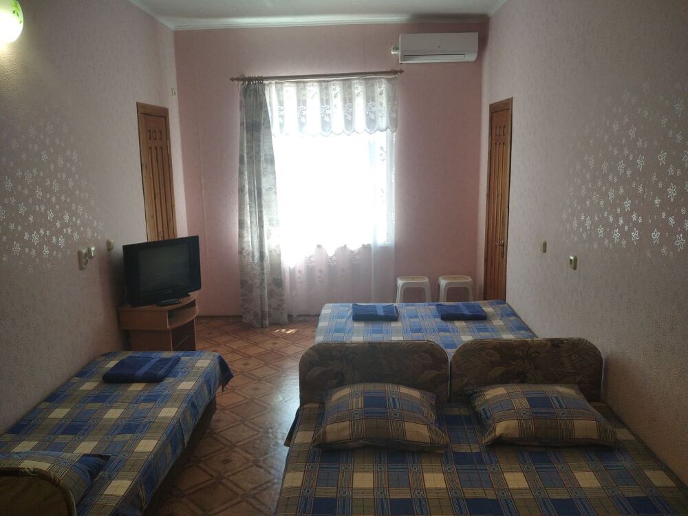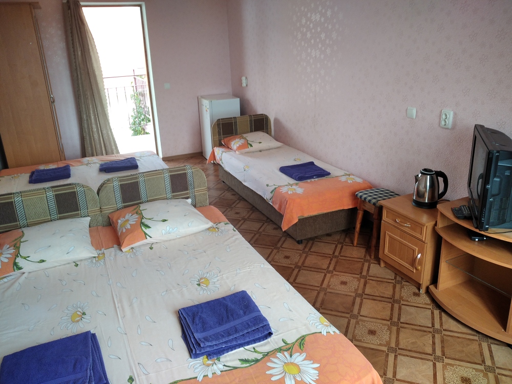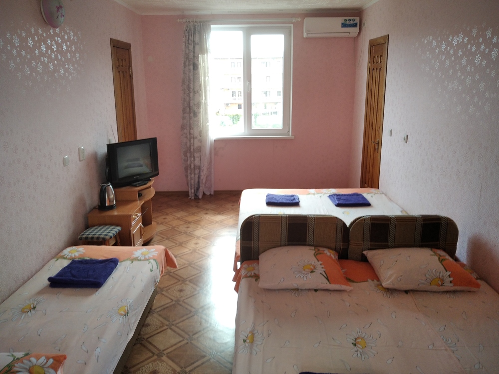 В номере двухспальная кровать, три односпальные кровати, шкаф для одежды, тумбочки, душ, туалет, умывальник (холодная и горячая вода - постоянно), телевизор, холодильник, кондиционер, по желанию вентилятор, Wi-Fi.