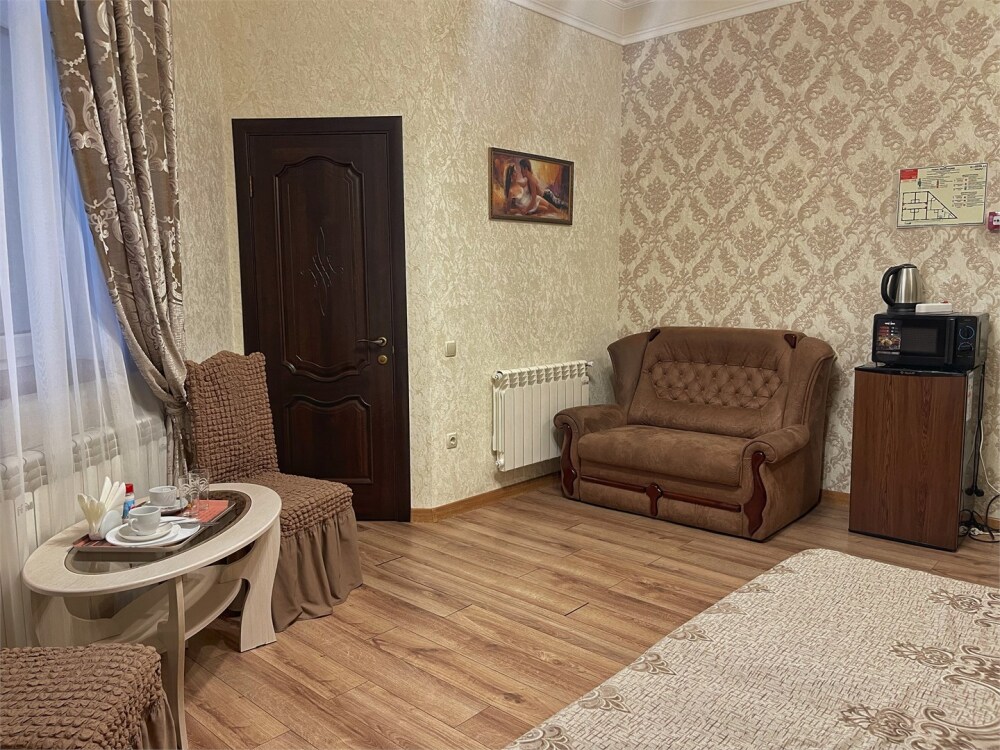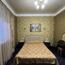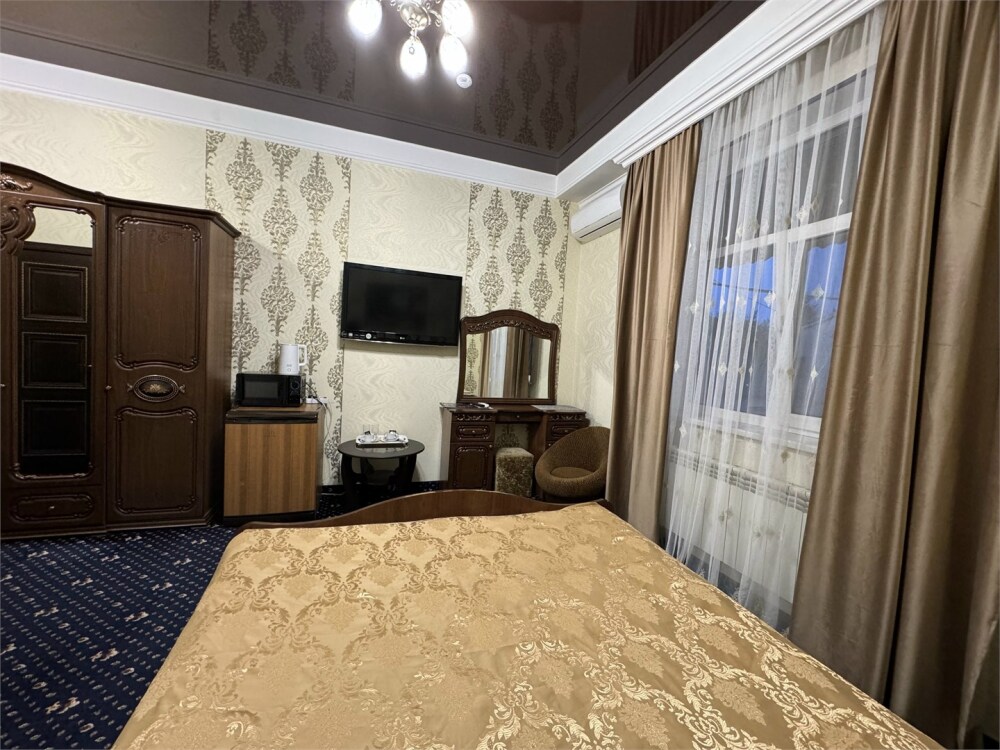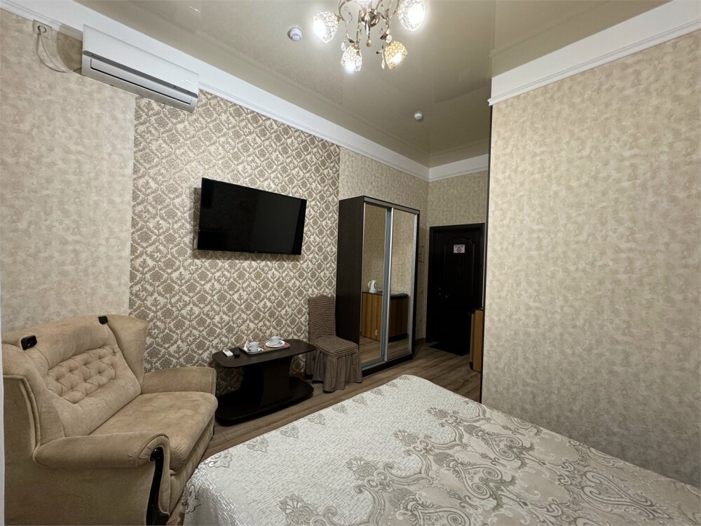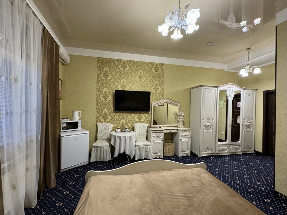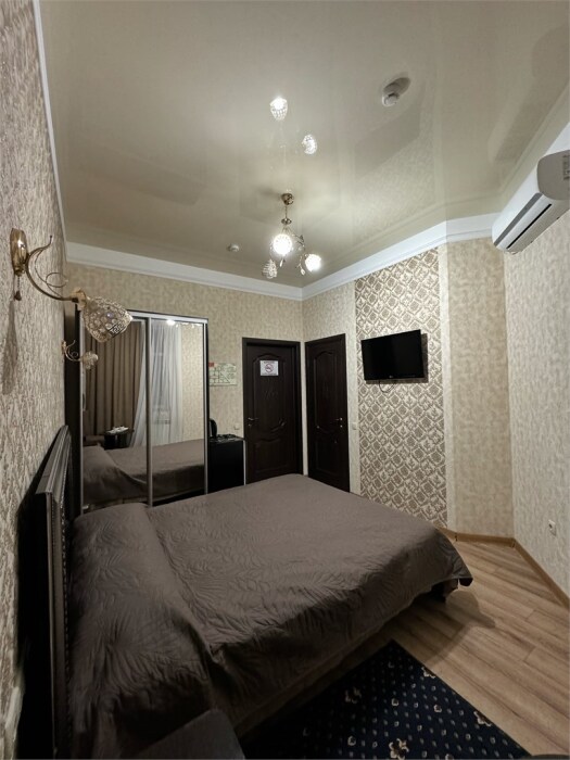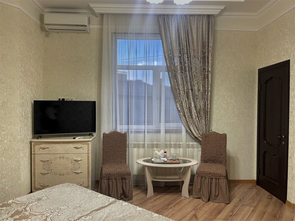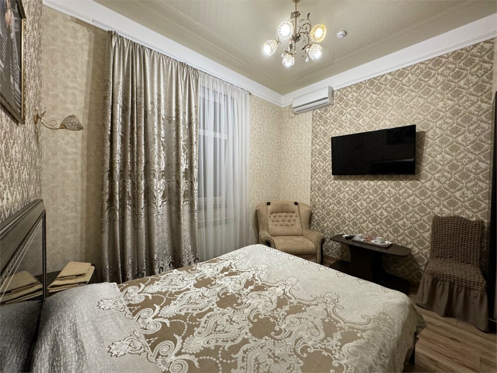 Остановившись в номере «Люкс» гостевого дома «ROYAL», Вы окунетесь в атмосферу роскоши и уюта. Каждый деталь интерьера тщательно продуман, чтобы создать гармоничное пространство для Вашего отдыха. В номере также есть холодильник, микроволновая печь и электрочайник для Вашего удобства. Телевизор и кондиционер в номере помогут вам наслаждаться комфортным пребыванием в отеле. Вы сможете наслаждаться просмотром любимых фильмов или передач и создать приятную атмосферу в номере. Вы сможете насладиться роскошью и комфортом, оставив за стенами гостиницы все трудности и заботы. Здесь Вы найдете все, что нужно для комфортного отдыха и полного расслабления!