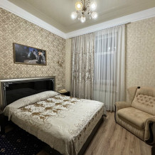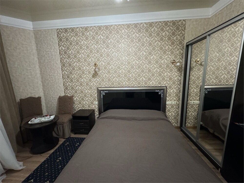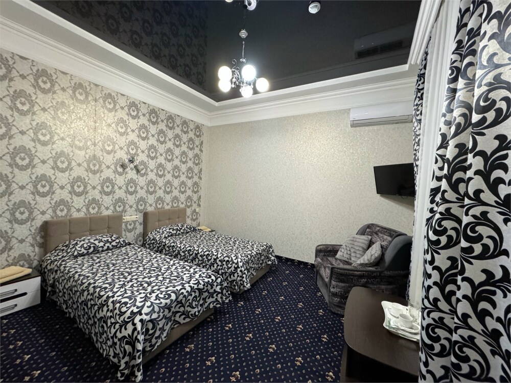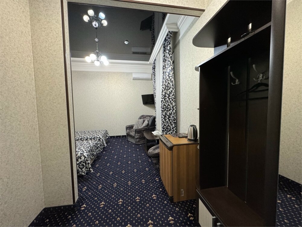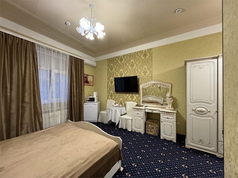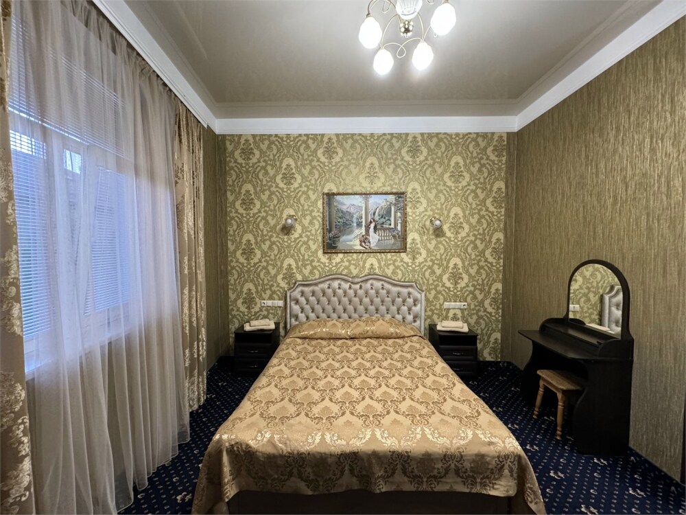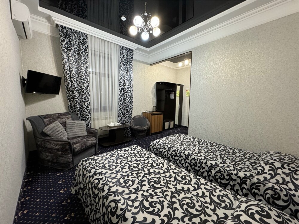 Остановившись в номере «Люкс» гостевого дома «ROYAL», Вы окунетесь в атмосферу роскоши и уюта. Каждый деталь интерьера тщательно продуман, чтобы создать гармоничное пространство для Вашего отдыха. В номере также есть холодильник, микроволновая печь и электрочайник для Вашего удобства. Телевизор и кондиционер в номере помогут вам наслаждаться комфортным пребыванием в отеле. Вы сможете наслаждаться просмотром любимых фильмов или передач и создать приятную атмосферу в номере. Вы сможете насладиться роскошью и комфортом, оставив за стенами гостиницы все трудности и заботы. Здесь Вы найдете все, что нужно для комфортного отдыха и полного расслабления!