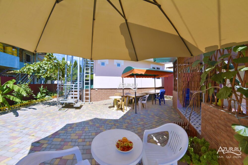 Небольшой закрытый двор домовладения включает: беседку с мангалом и просто беседку для отдыха на воздухе. Два общих дополнительных санузла и умывальника во дворе, место для парковки личных авто по предварительной договорённости.