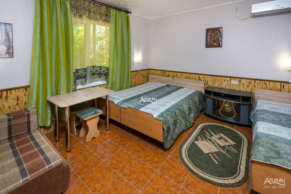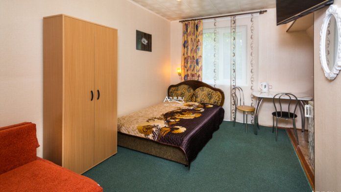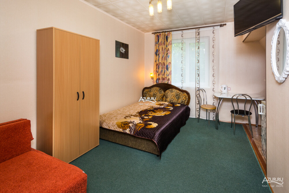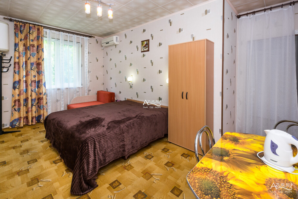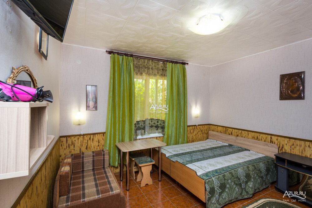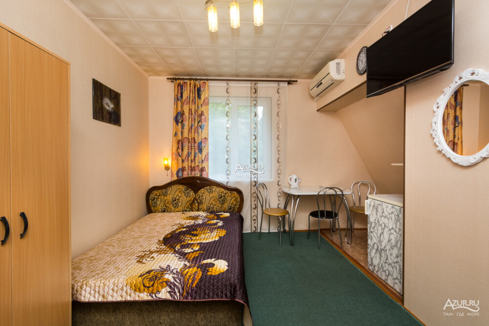 Номер на первом этаже, имеет отдельный вход, собственный небольшой дворик, что очень удобно для отдыха с детьми.