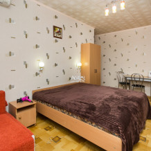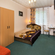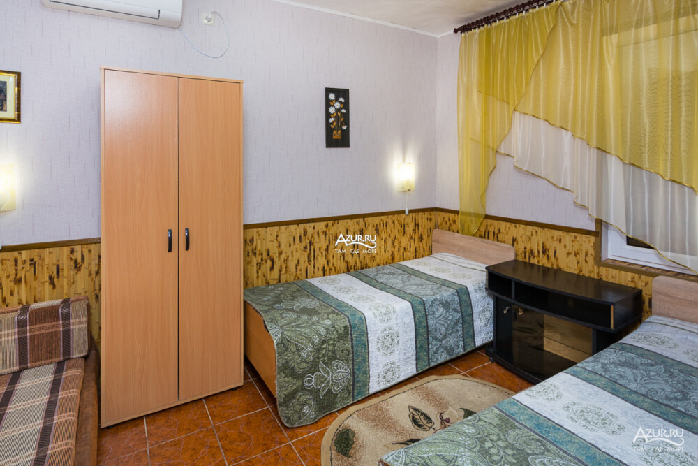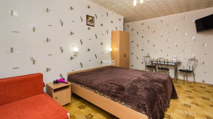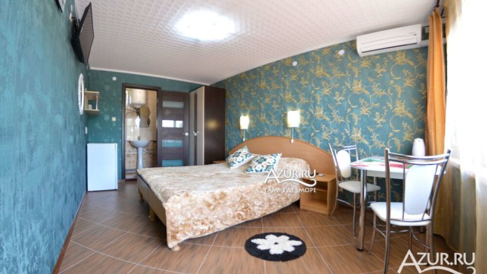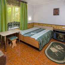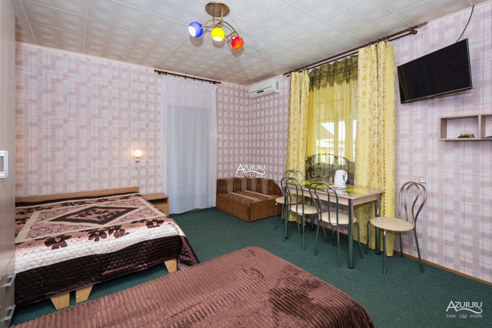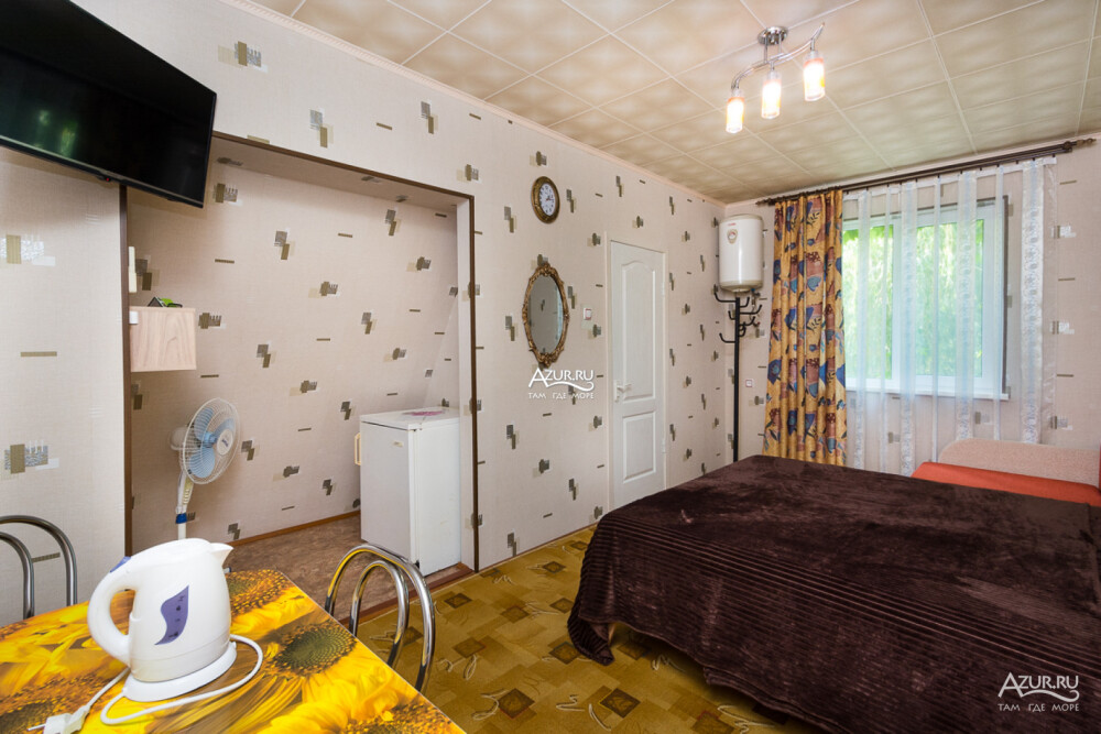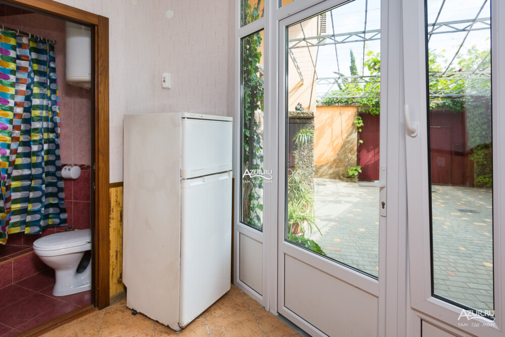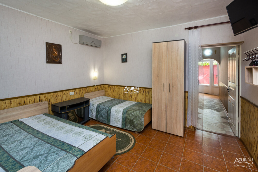 Номер на первом этаже, имеет отдельный вход, собственный небольшой дворик, что очень удобно для отдыха с детьми.