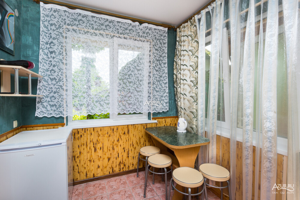 В каждом из номеров гостевого дома свой санузел, кондиционер, холодильник и приличная мебель. Для каждых трёх номеров своя терраса с кухней и столовой с индивидуальным столиком для каждого номера. У «Семейного» номера свои кухня и столовая. На втором этаже номера с небольшими столовыми в каждом номере, на третьем этаже номера поскромнее.