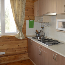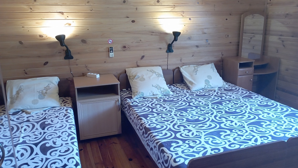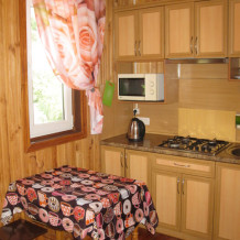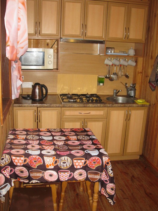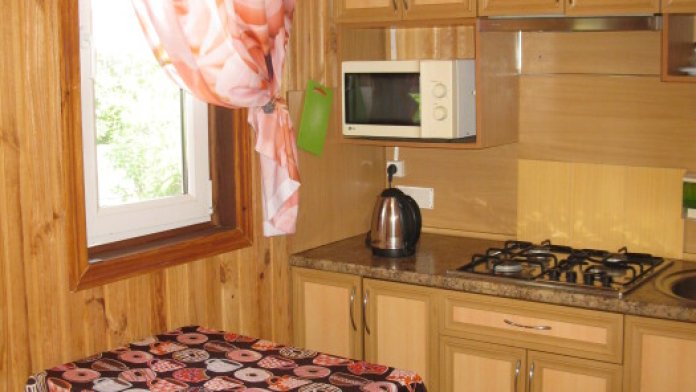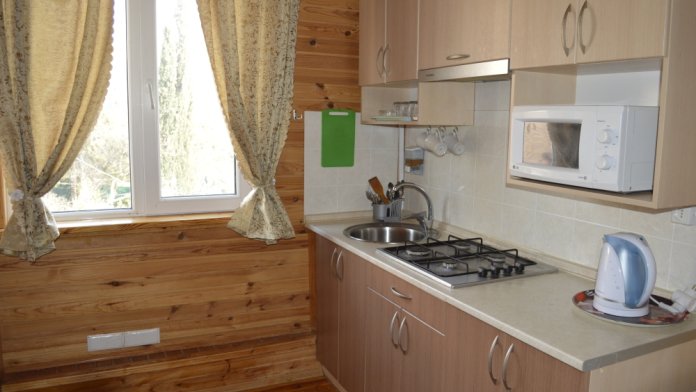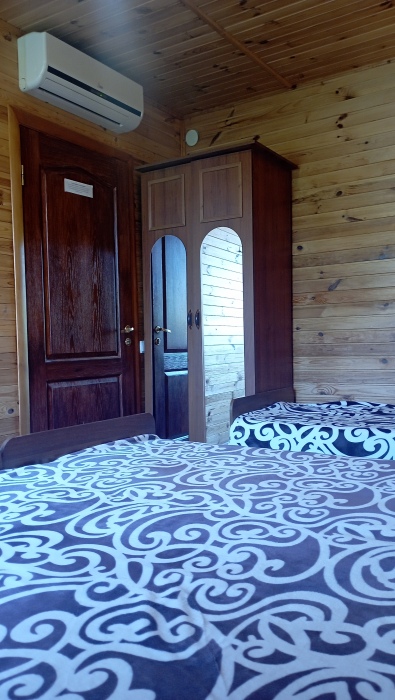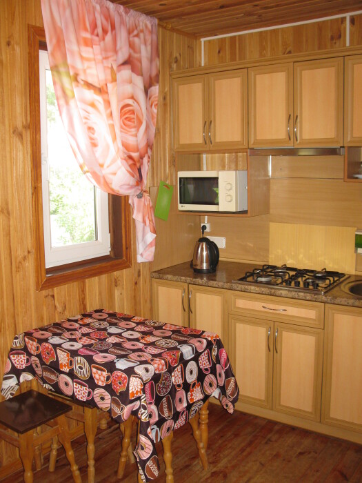Отдыхающим предлагается два 3-местных и два 4-местных номера со всеми удобствами. В каждом номере кухня с полным набором посуды для самостоятельного приготовления пищи, газовая и микроволновая печи, электрочайник, стиральная машина, большой холодильник, комната гигиены, комната отдыха, в которой: три кровати, кондиционер, телевизор, сейф, вещевой шкаф, прикроватные тумбочки, утюг и гладильная доска. Во всех номерах (2 и 3 этаж) свой балкон. На 1-м этаже проживают хозяева.