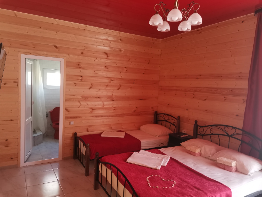 Отдельный Домик эконом класса. В номере только необходимая мебель, все удобства отдельно на улице 3 туалета и 3 душа благоустроенные, как в квартире. Есть летняя кухня, где можно готовить или столовая во дворе, также на территории дома есть беседки, качели, песочница.