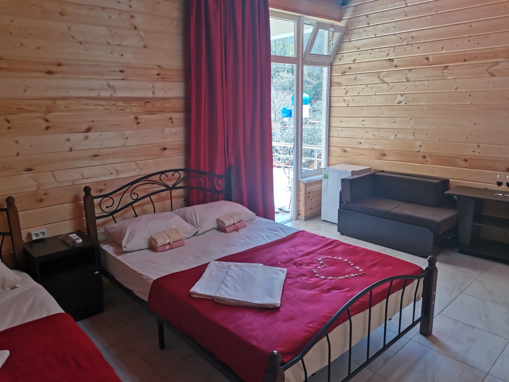 Солнце, горы, рядом речка, ущелье, природа. Это небольшое село Лдзаа около города Пицунда на берегу Чёрного моря. Здесь и находится наш отель с разными категориями комнат.