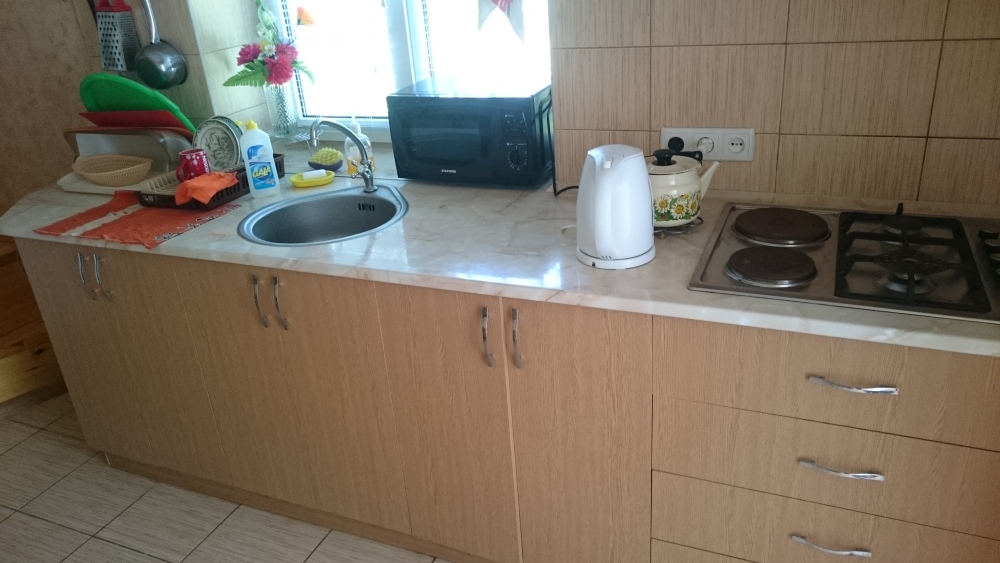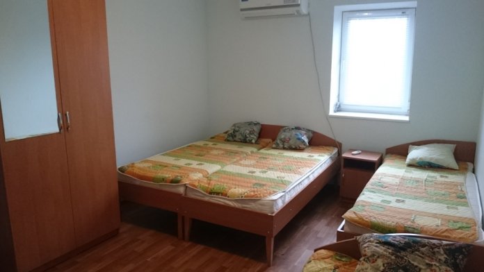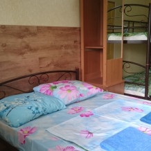 В номере кондиционер, телевизор, вай-фай. Сан.узел совмещен с душем, рассчитан на 2 номера. Находится рядом с номером. Кухня общая для двух номеров. Питание самостоятельное. Дополнительно есть душ и туалет рядом с номером. Во дворе беседка для отдыха, детский уголок, бесплатная парковка, зона барбекю. Мангальные принадлежности, качели, песочница для детей. Предоставляем за доп.плату: прокат велосипедов, пользование стиральной машинкой, своя банька на дровах! Предоставляем трансфер и услуги такси по Крыму, проводим экскурсии