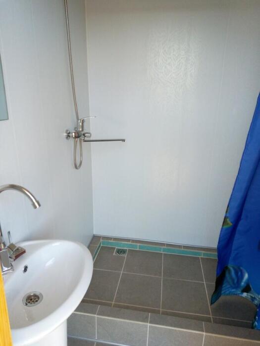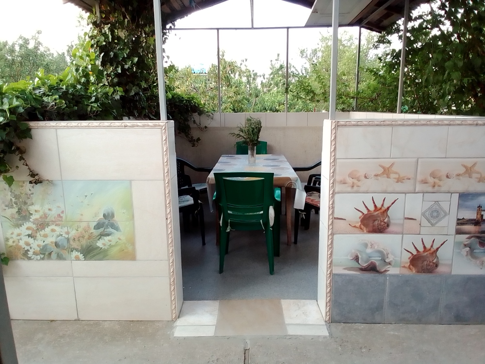 В номере телевизор, кондиционер, вай-фай. Сан.узел для номера раздельный, находится рядом с номером и рассчитан на 2 номера. Есть дополнительный душ и туалет на первом этаже. Терраса для этих двух номеров. Кухня общая на 1 этаже для четырех номеров. Питание самостоятельное. Во дворе бесплатная парковка, зона барбекю, детский уголок, беседки для отдыха.