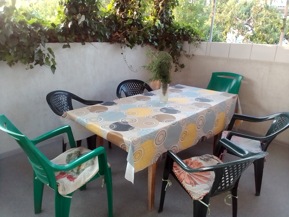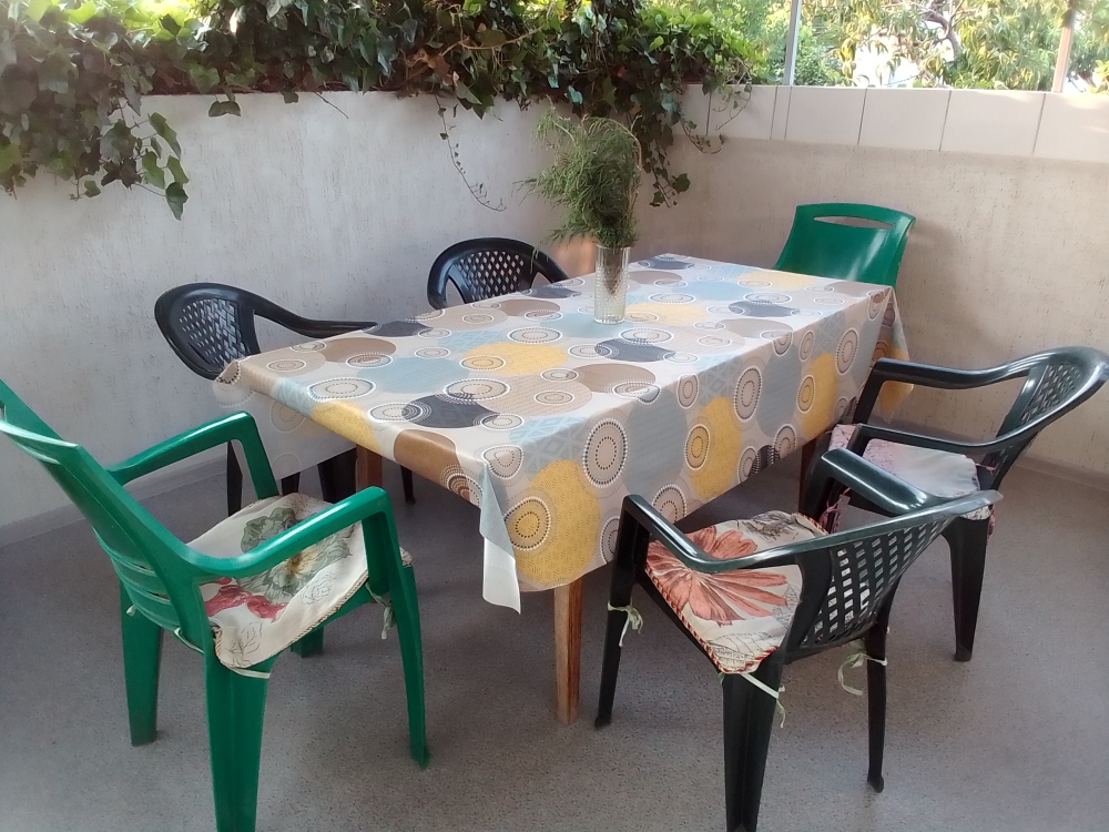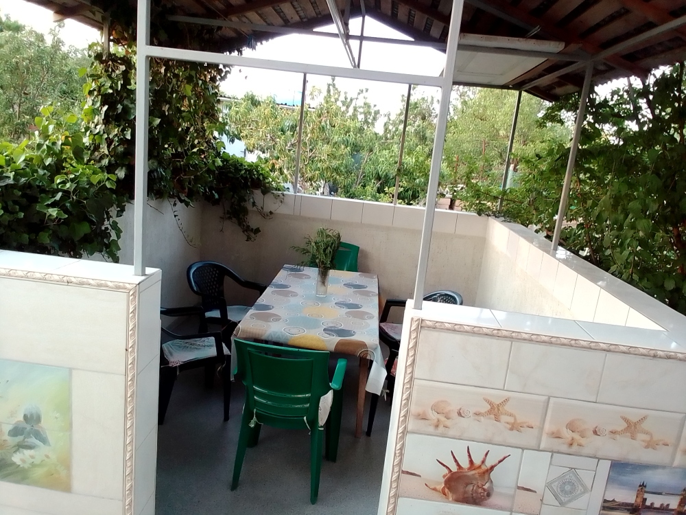 В каждой комнате есть кондиционер, телевизор, вай фай. 2 комнаты по 4 спальных места, на втором этаже с выходом на террасу. Кухня - общая на 4 номера, санузел раздельный и находится рядом с номером. Питание самостоятельное. Есть дополнительно для этого номера летний душ и туалет на первом этаже. Во дворе зона барбекю, бесплатная парковка, детский уголок.
