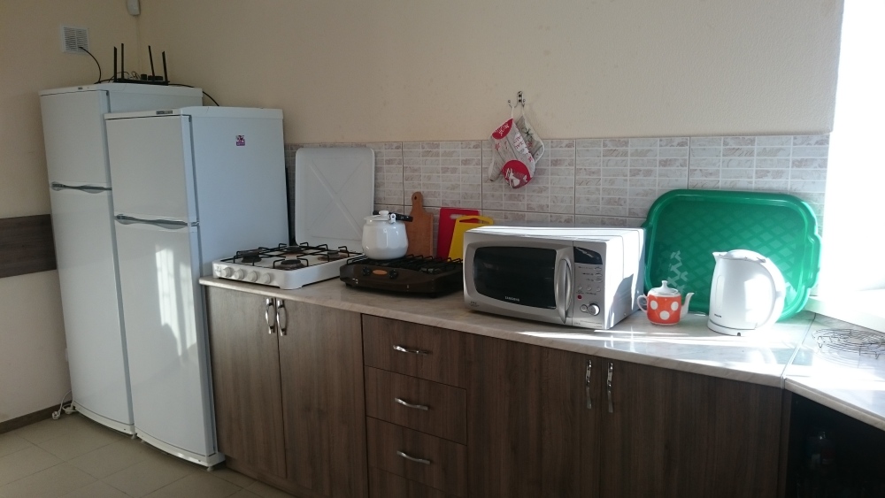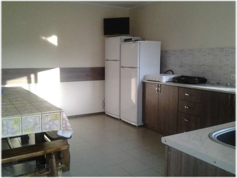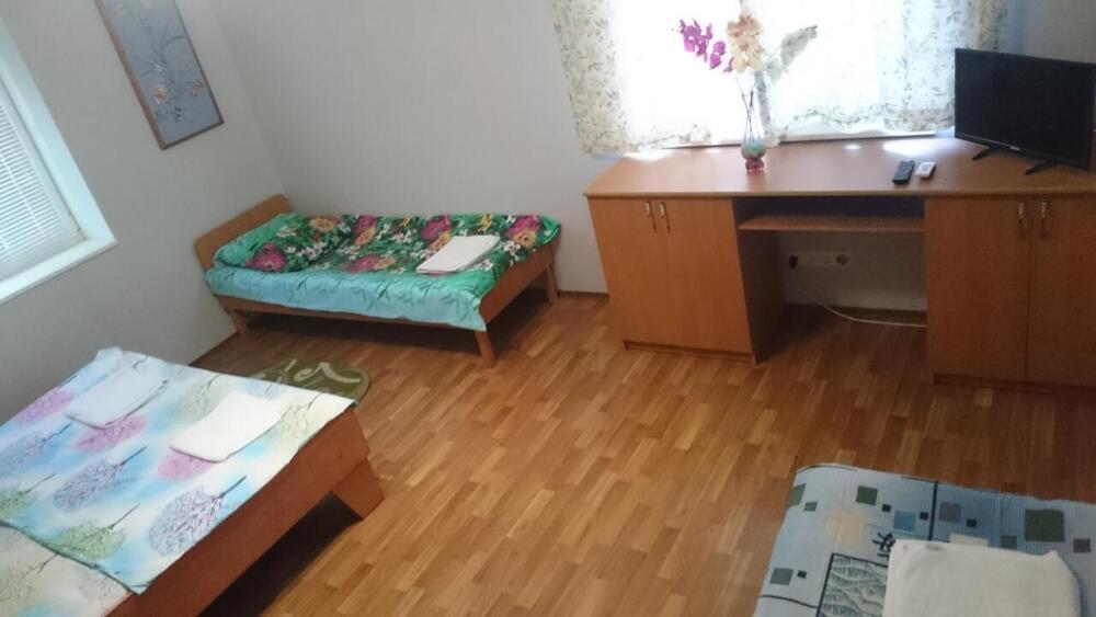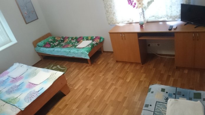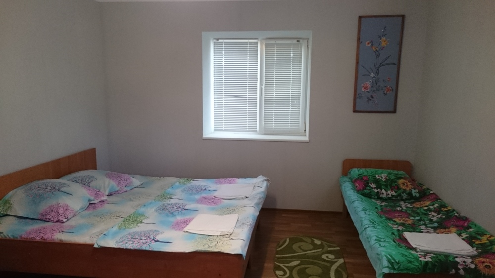 В номере кондиционер, телевизор, вай фай. Сан.узел совмещенный, рядом с номером. Дополнительно есть душ и туалет рядом с номером на улице. Кухня и сан.узел рассчитаны на 2 номера. Питание самостоятельное. Во дворе беседка для отдыха на свежем воздухе, детский уголок, бесплатная парковка, зона барбекю.