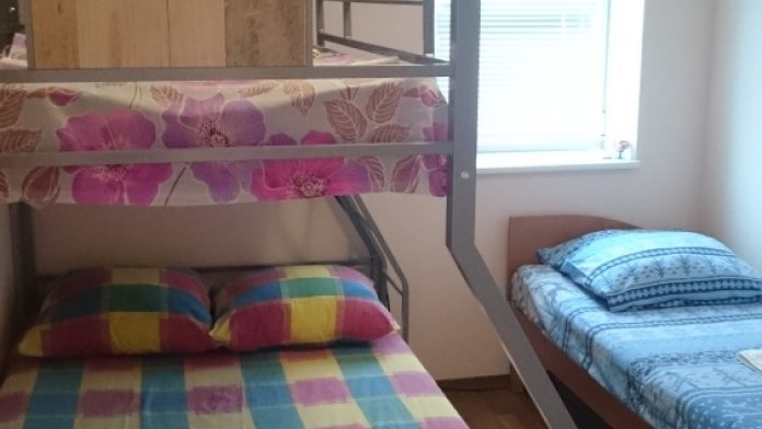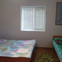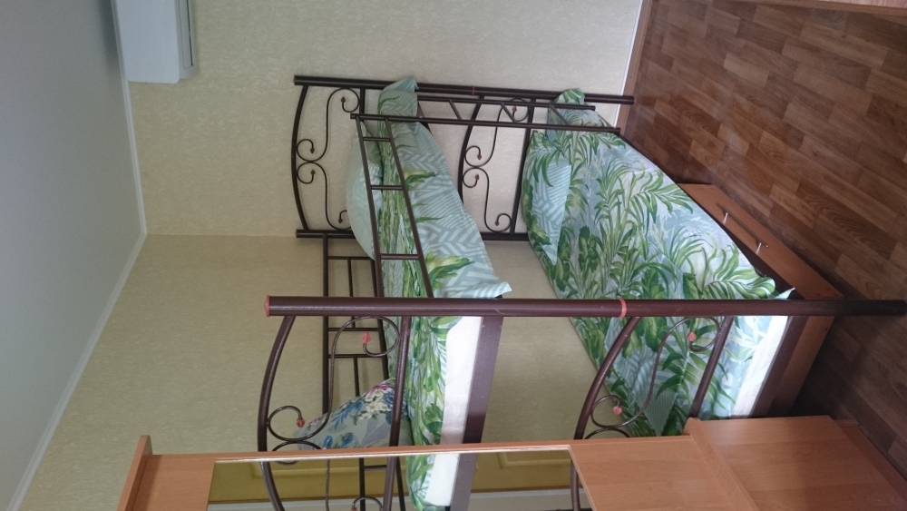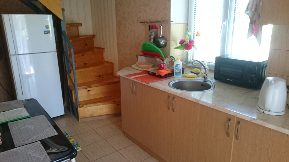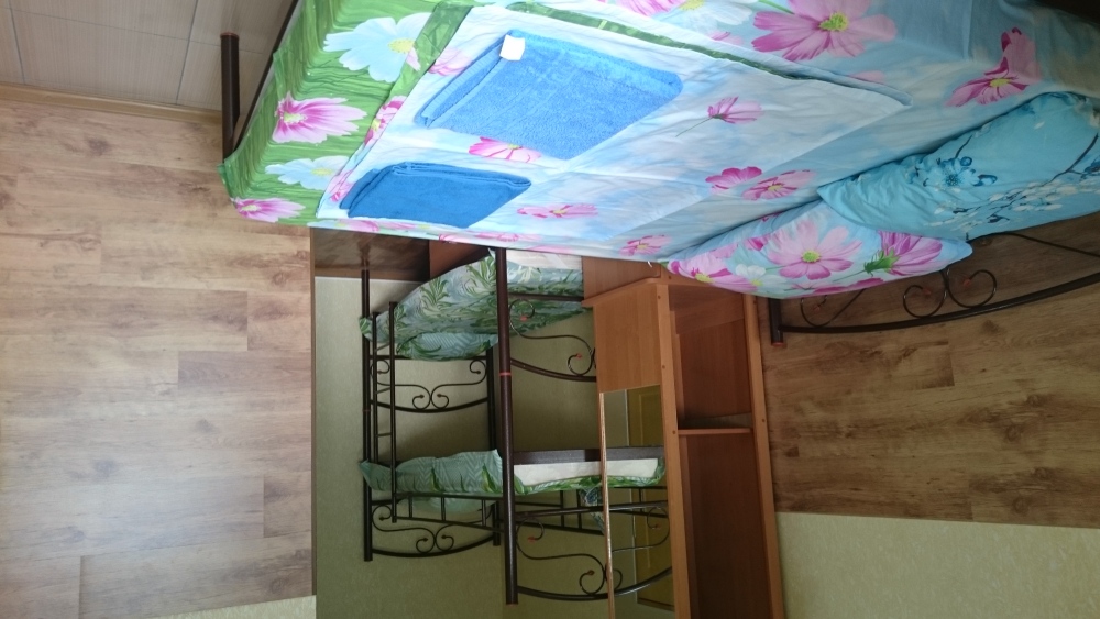 2 комнаты (1 этаж - небольшая комната на 4 человека, на втором этаже - на 5 человек, своя кухня, санузел. Питание самостоятельное. Во дворе беседка для отдыха на свежем воздухе, детский уголок. зона барбекю, бесплатная парковка. Дополнительно есть летний душ и туалет