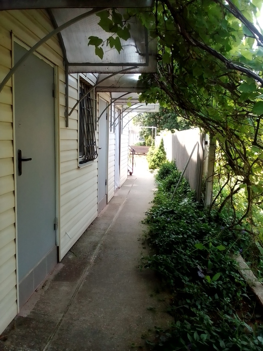 Все номера выходят во внутренний дворик с видом на сад. Незабываемое зрелище - видеть, как цветет и растет персик и яблоня. Запах хвойных растений и роз не оставит Вас равнодушным к этому месту: можжевельник, туя, розы и пряные травы будут радовать Вас своим ароматом. Также в номерах мини-гостиницы установлены шкаф для одежды и телевизоры с плоским экраном. В каждом номере есть кондиционер. Гладильные принадлежности и фен - бесплатно по запросу. На территории гостевого дома имеется стиральная машинка. Пользование машинкой не входит в стоимость номера.