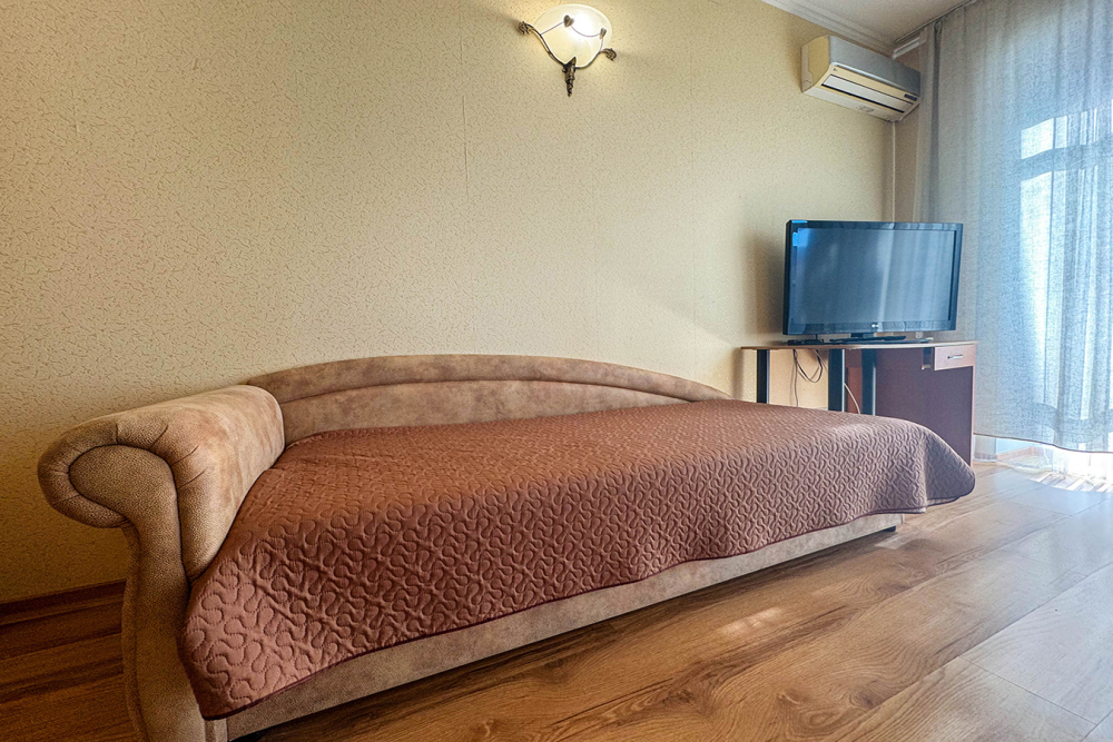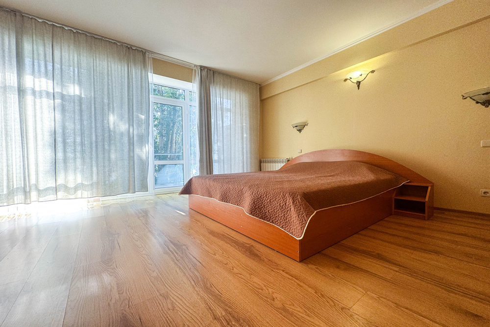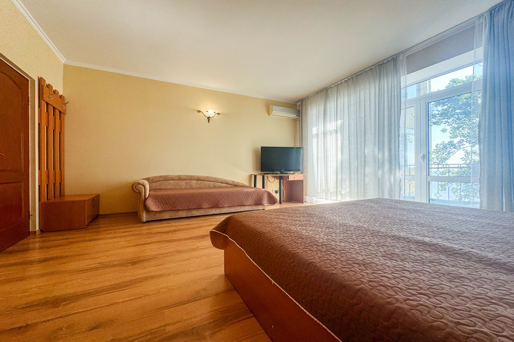 - 2 этаж: две спальни, одна с балконом и видом на море.
