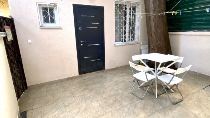 Квартира находится на первом этаже и выходит в свой отдельный дворик, очень удобно отдыхать с детьми.