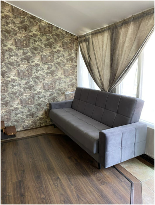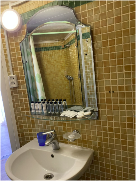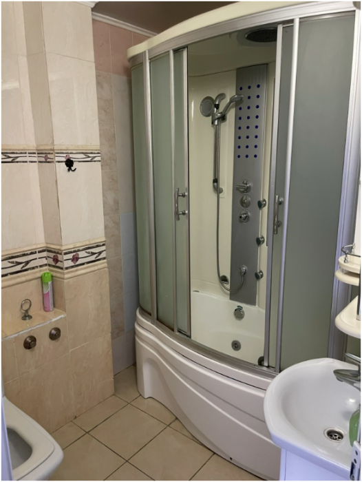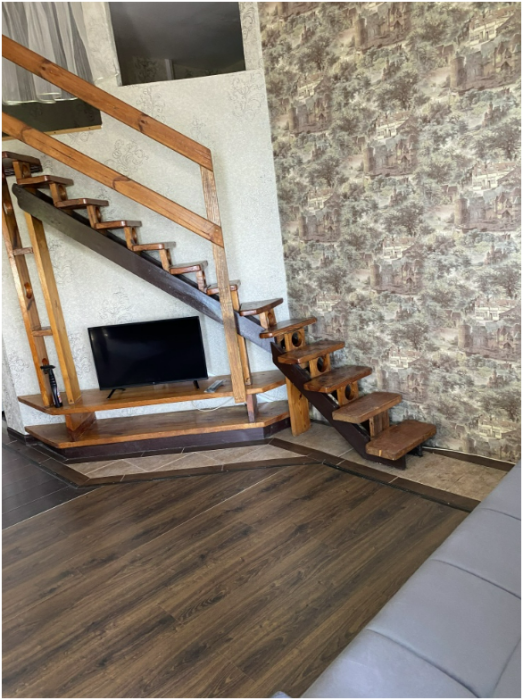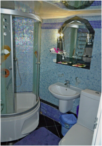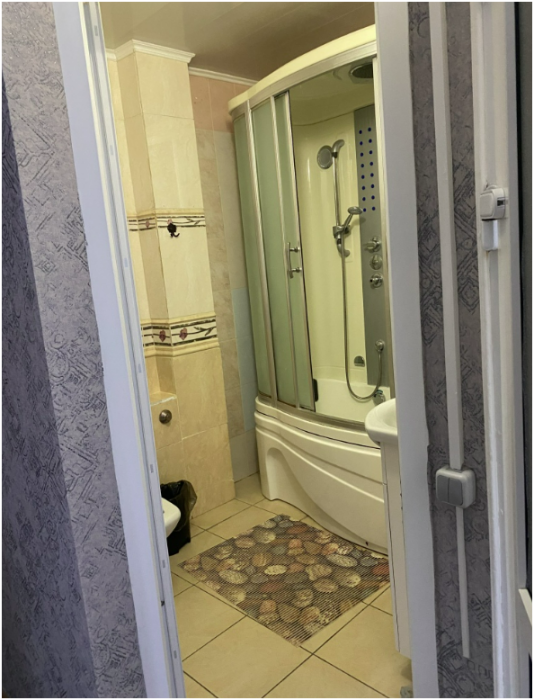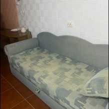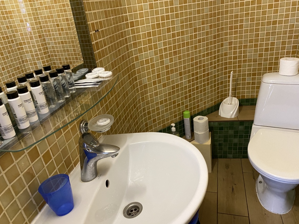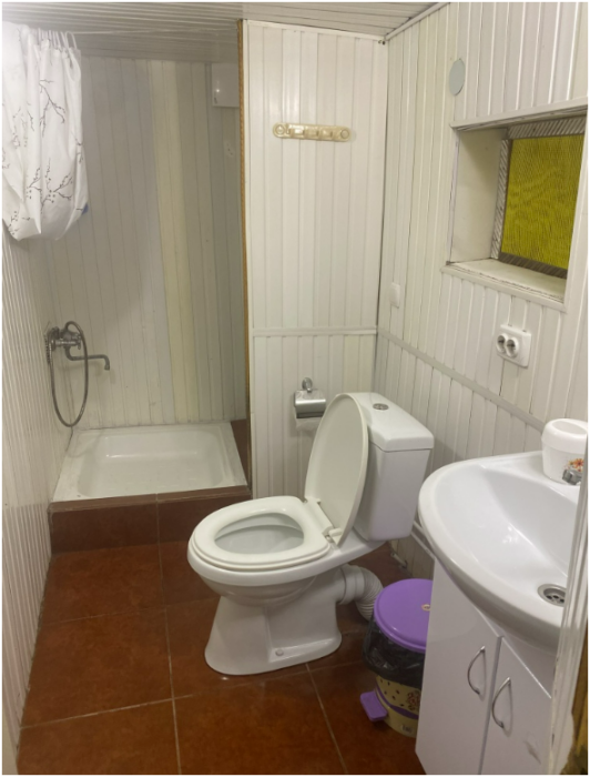 Есть мини-кухня: раковина, электрочайник, СВЧ-печь, набор посуды.
