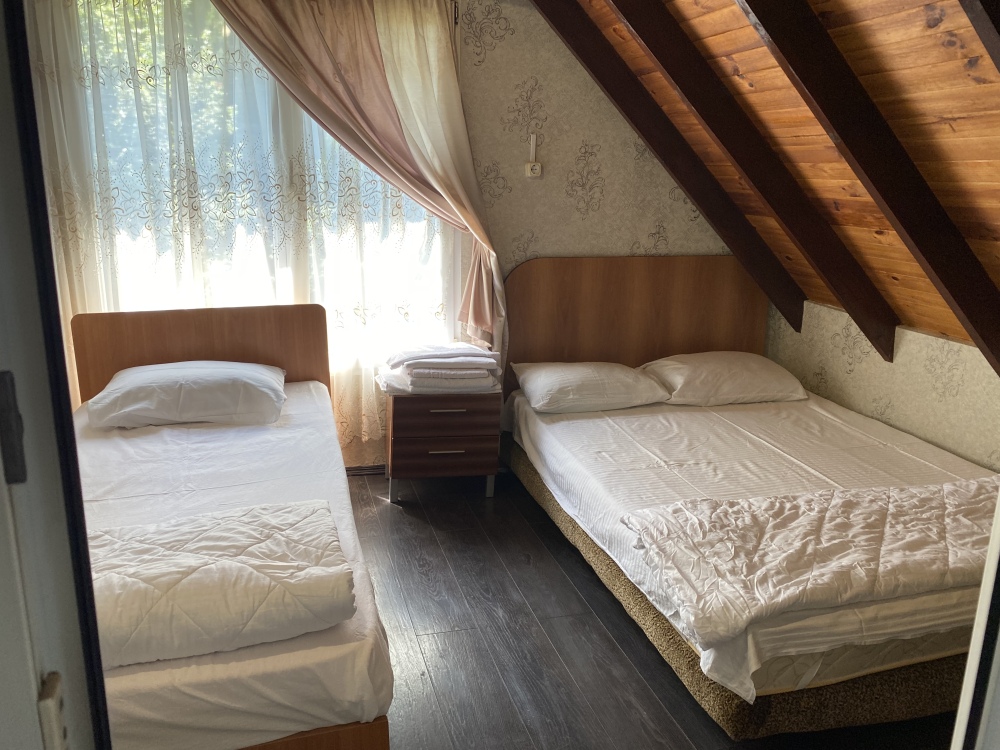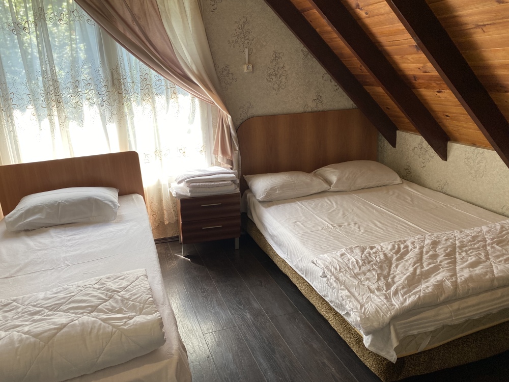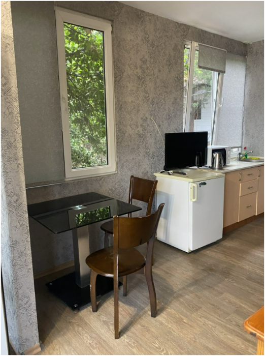 Гостевой дом утопает в экзотической зелени, а свежий чистый морской воздух оказывает на организм мощный оздоравливающий эффект, очищает лёгкие и улучшает сердечно-сосудистую систему. Дополнительные удобство и безопасный простор для отдыхающих с детьми создаёт отсутствие автомобильного движения и громкого шума.