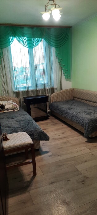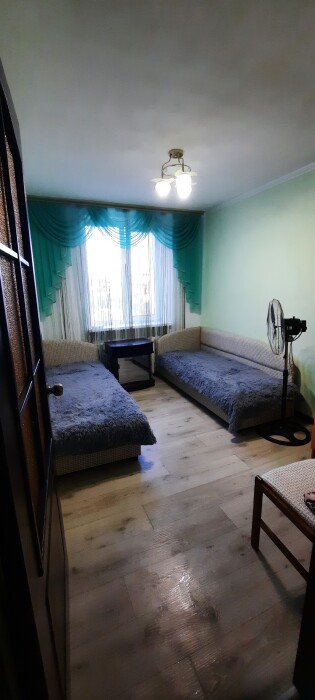 Лифт, Wi-Fi, кондиционер, горячая и холодная вода постоянно, полотенца, постельное бельё, утюг, микроволновка, душ, душа Шарко нет, автом. стиральная машинка, совмещенный санузел, посуда столовая, кухонная посуда и утварь, газовая плита, чайник, хорошая мебель, раздельные комнаты, лоджия. Один двуспальный угловой раздвижной диван и две кровати односпальные.