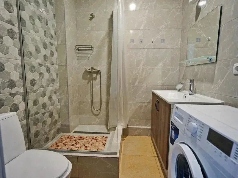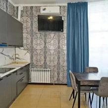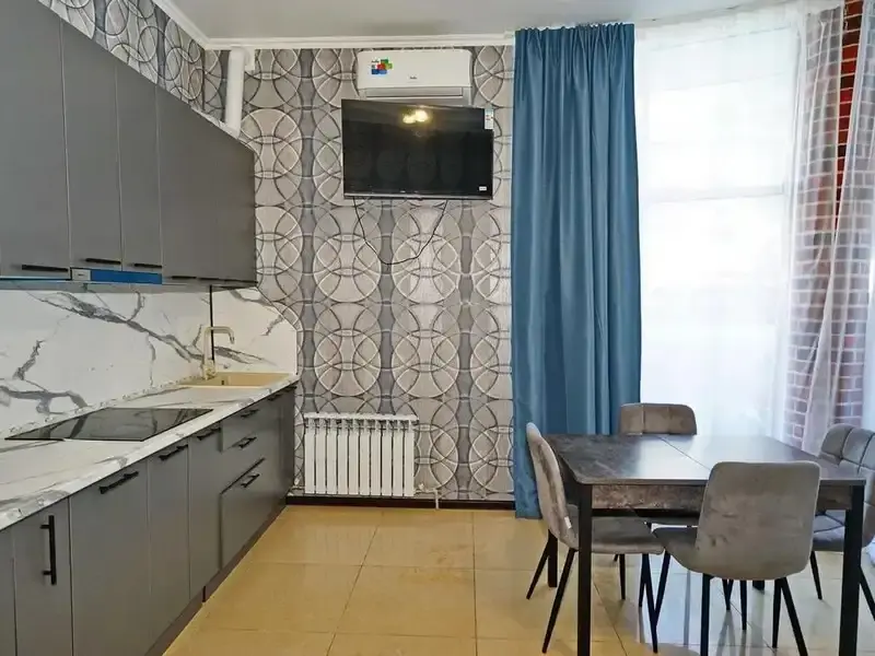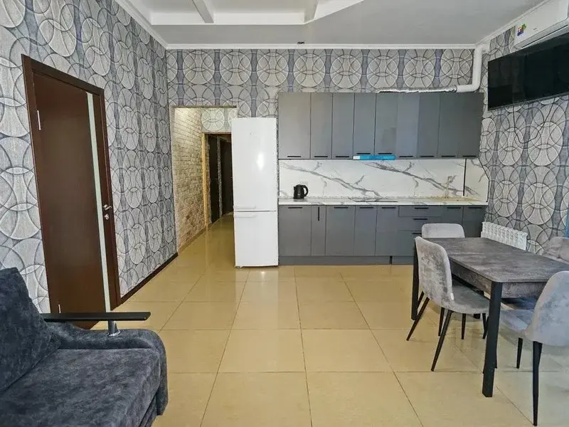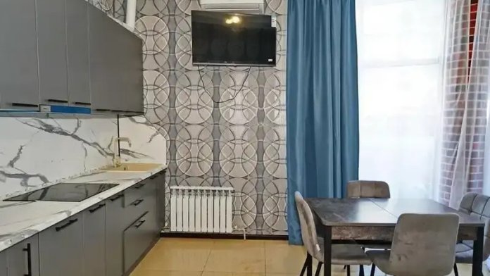 Номер с современной отделкой, оборудован техникой и мебелью: двуспальная кровать, двуспальный диван, кресло-кровати, шкаф, тумбочки, столик, стулья, балкон (уточнять), стиральная машинка, личная кухня, варочная панель. Стоимость указана за проживание четверых человек. За каждого последующего человека доплата к прайсу.