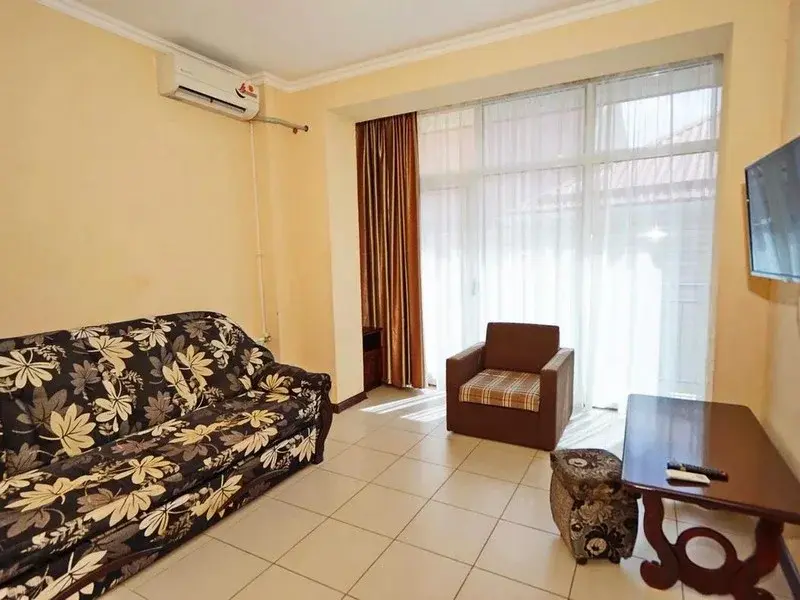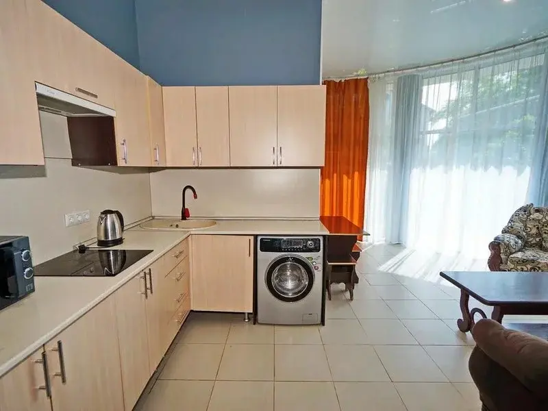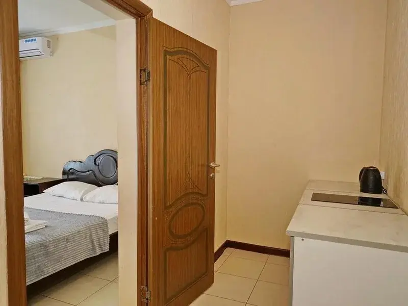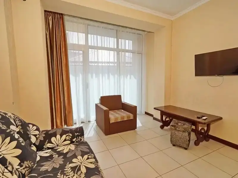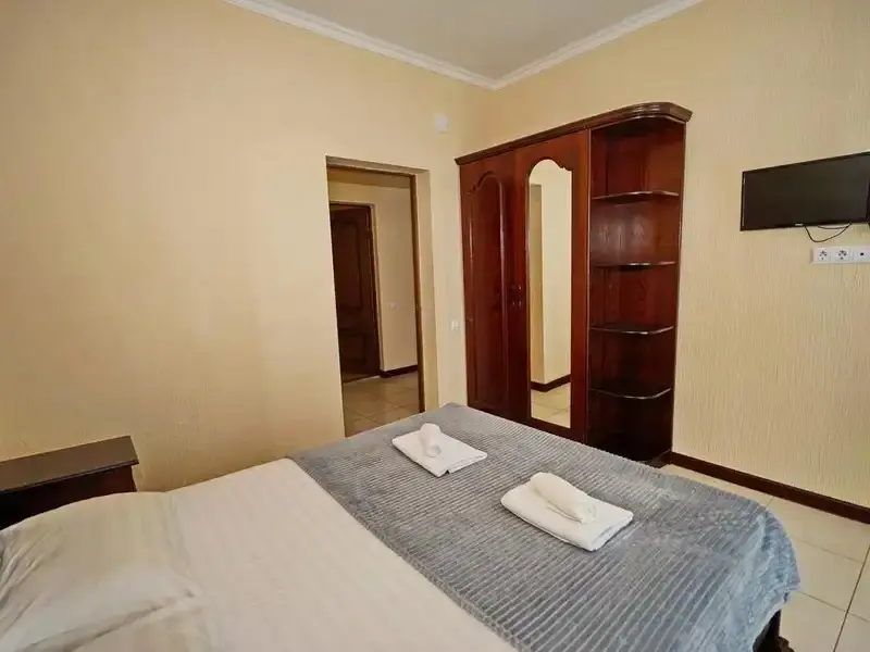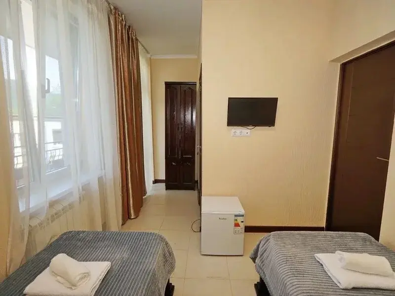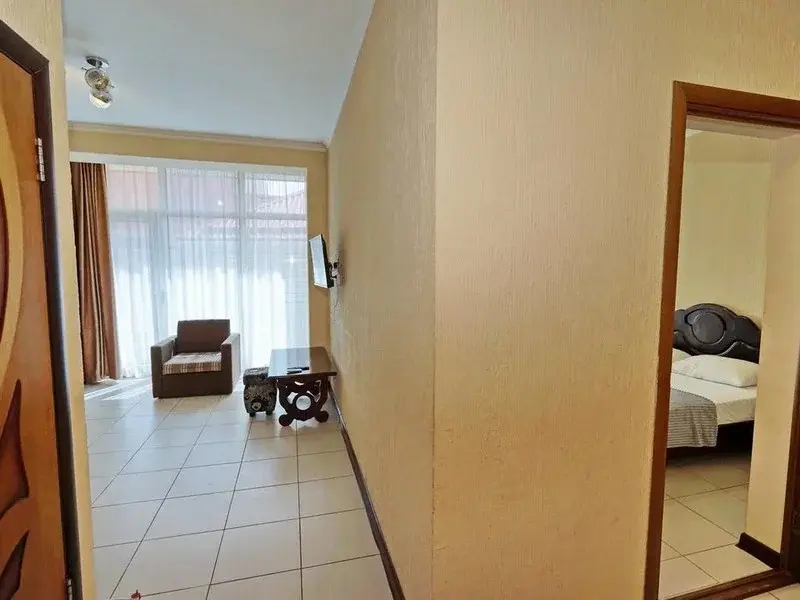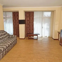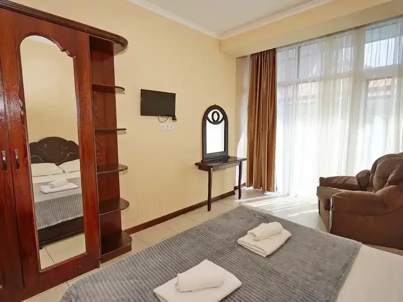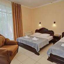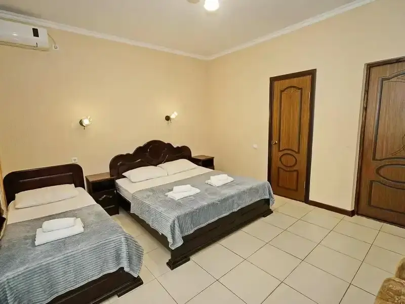 До побережья Черного моря - всего 800 метров (около 12-15 минут прогулки). Дорога к морю проходит по благоустроенным улицам, а обратный путь который не требует больших усилий, станет приятной завершающей точкой морского дня. Сам Гостевой дом представляет собой четырехэтажное здание с комфортабельным номерами разных категорий, однокомнатные, двухкомнатные номера с кухнями и без (вместимость номеров от 2-8 человек). Номера очень уютные и просторные, оборудованные всем необходимым: телевизор, кондиционер, холодильник, санузел, балкон (уточнять). Номера с кухней оснащены дополнительной техникой: плита, чайник, стиральная машина, набор посуды.