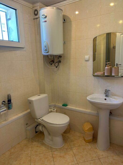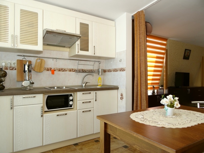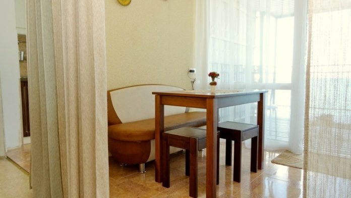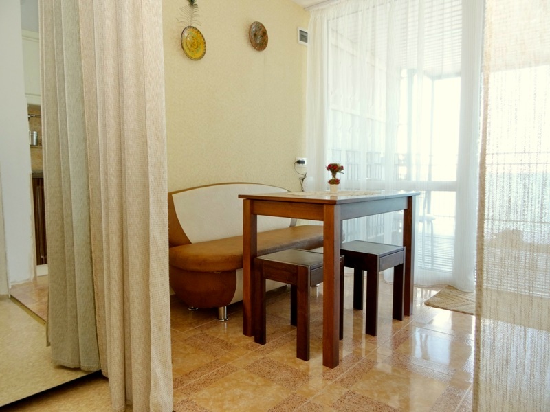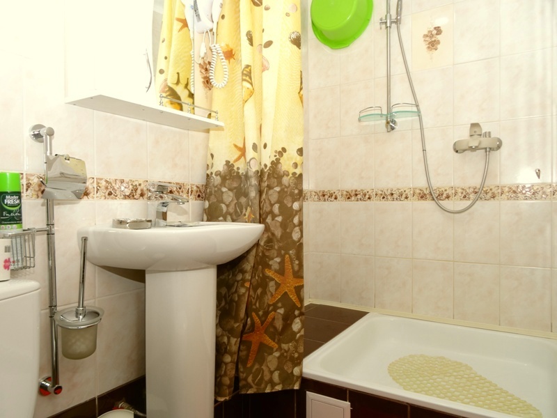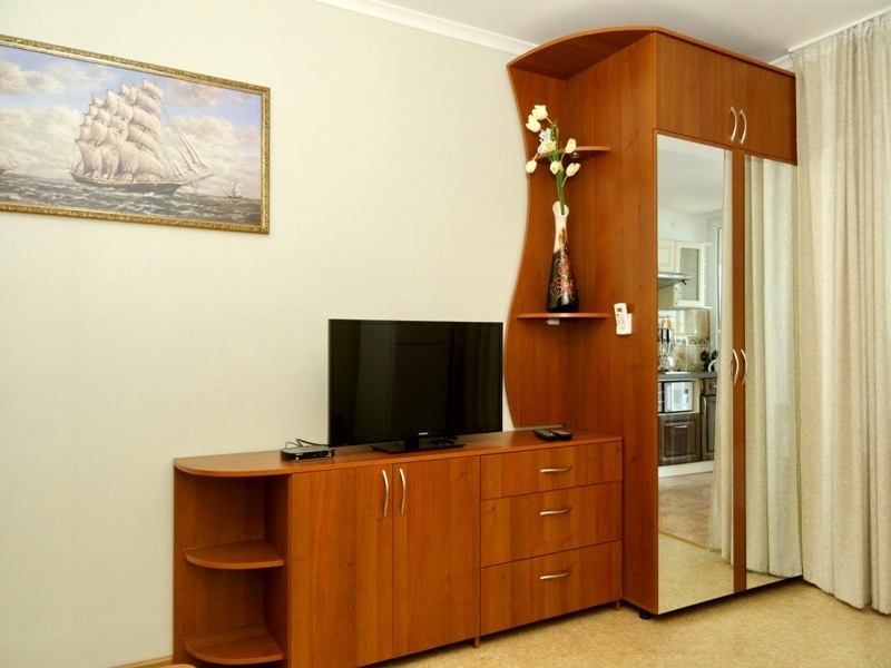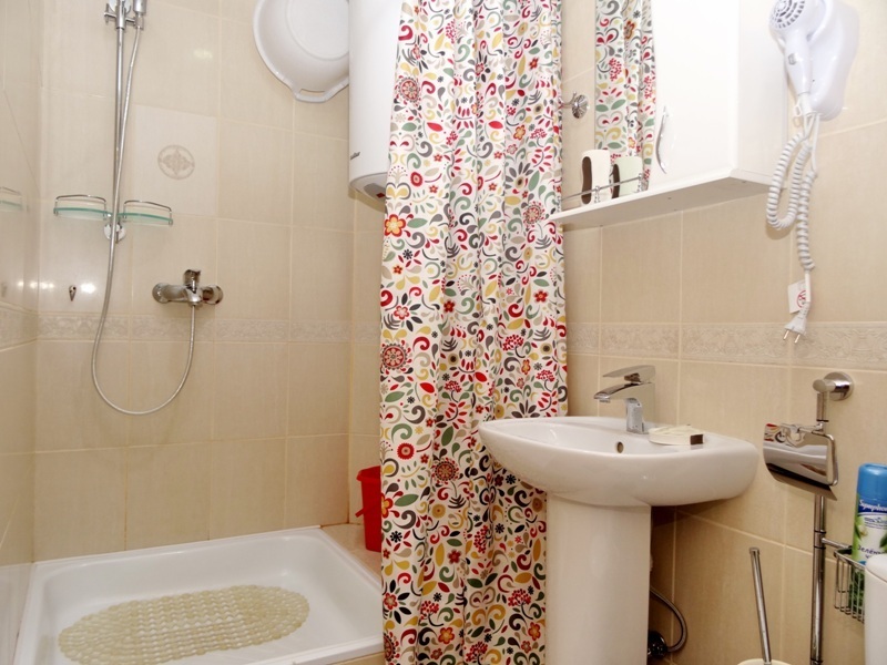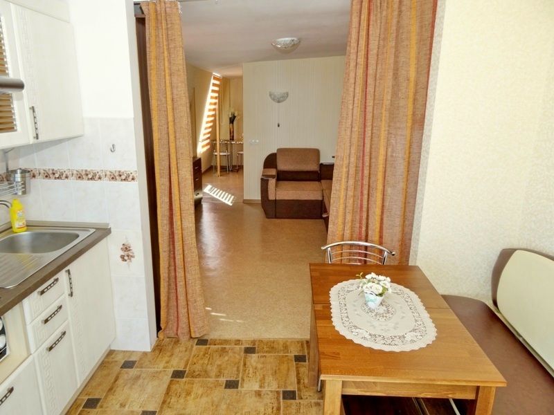В номере: новая мебель, телевизор, беспроводной интернет с хорошей скоростью, холодильник, кухня, душ и санузел. В ванной комнате всегда полный флакон жидкого мыла, шампунь, гель - в одноразовых пакетах, полотенца идеальной чистоты, фен. Белье меняется раз в пять-шесть дней.