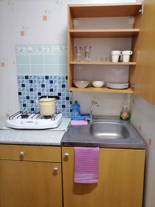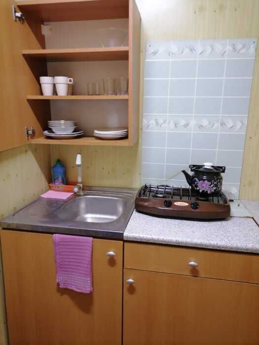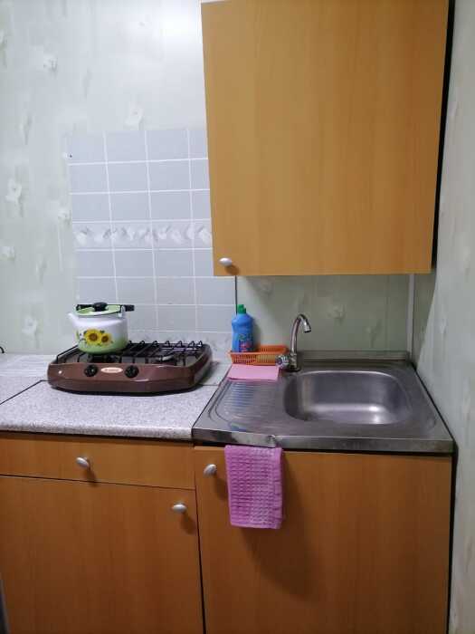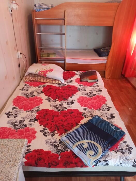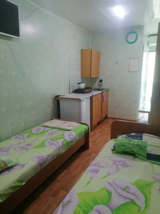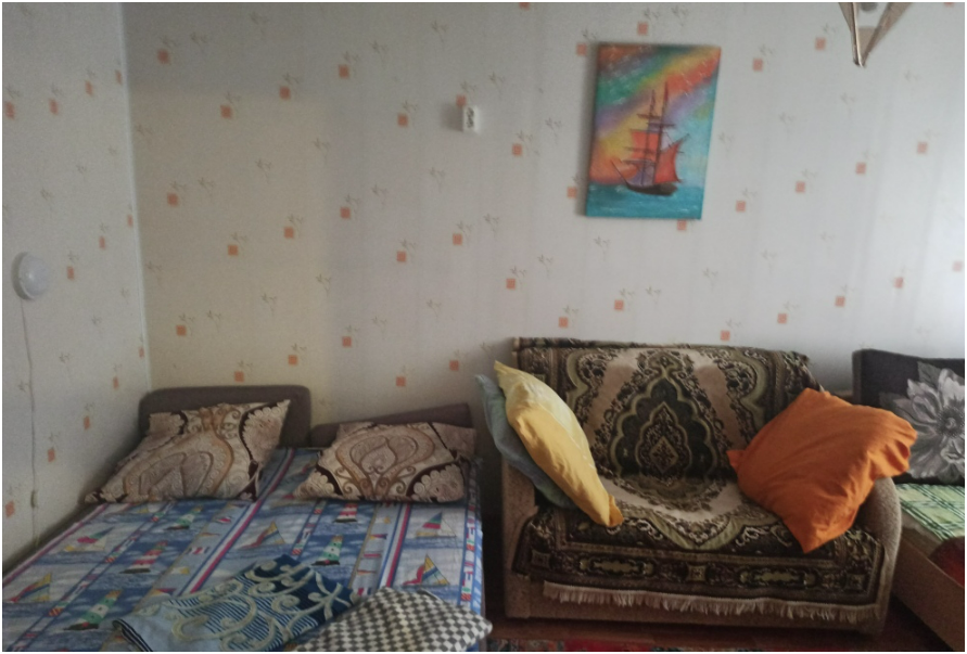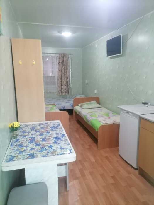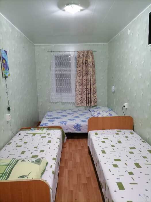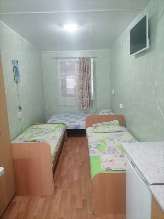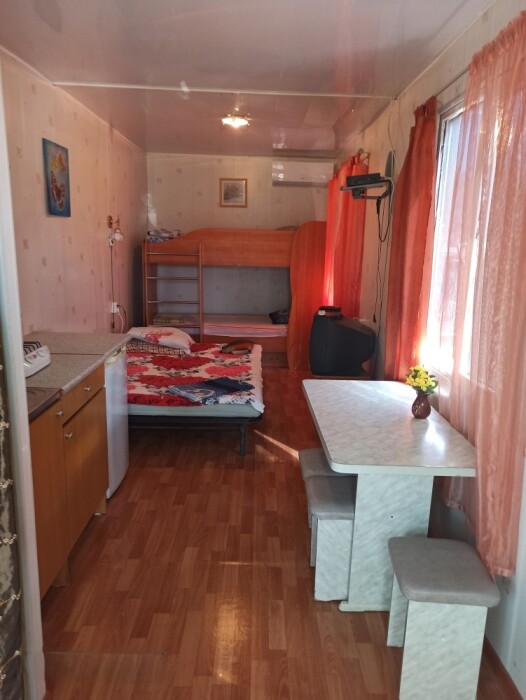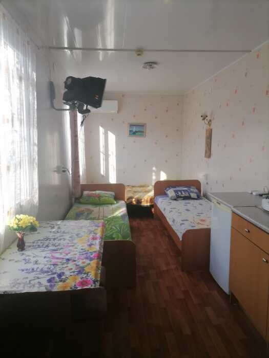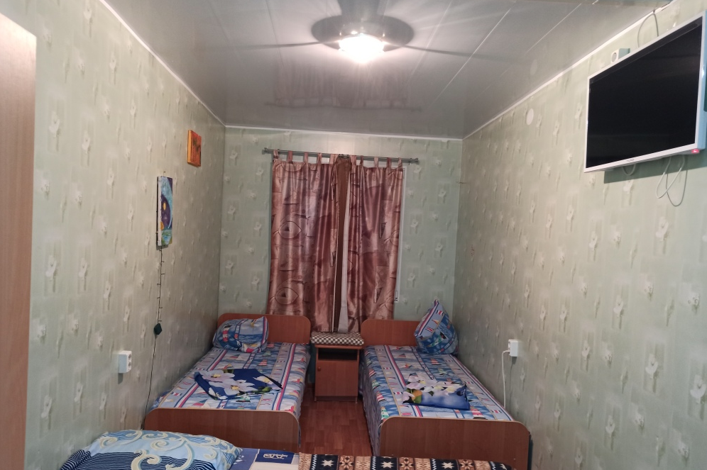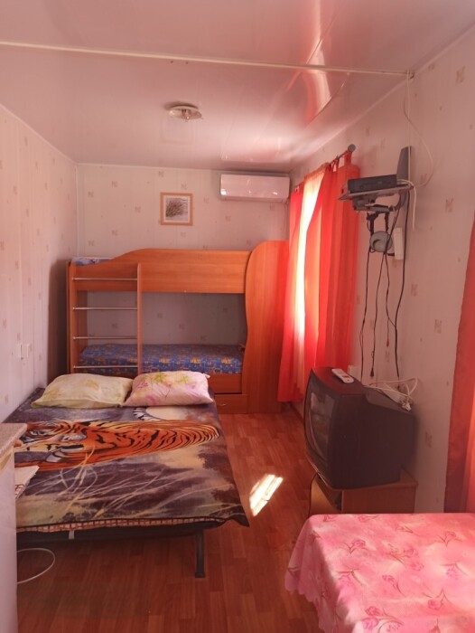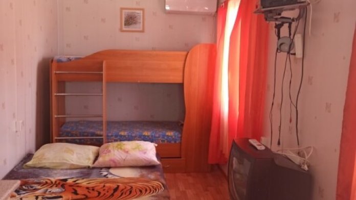 Номер от 2 до 4 чел. Две тахты, 2-спальный диван, шкаф, стол с табуретами, оборудованная кухня (плита газовая, холодильник, посуда), телевизор. Душ и туалет в каждом номере. 4 номера на этаже.