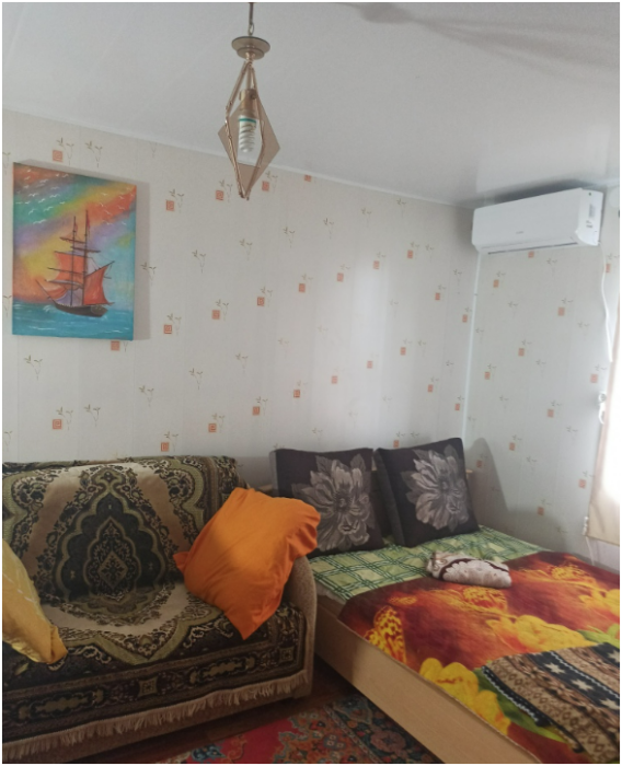 Номер на 2 этаже 1 линии моря, со всеми удобствами: кухня, газовая плита, посуда, душ, туалет, холод, ТВ, сплит система, шкаф, стол, 4 табуретки, зеркало, постельное, полотенца. Фен на 1 этаже.