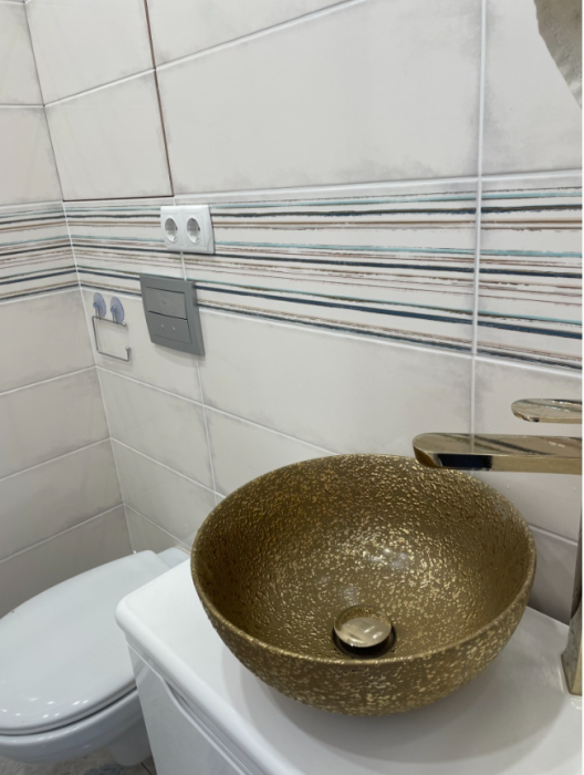 Новый дом, дизайнерский ремонт, новая мебель, новая бытовая техника, кухонная зона, холодильник, СВЧ, кондиционер, бойлер, стиральная машина, телевизор, Wi-Fi.