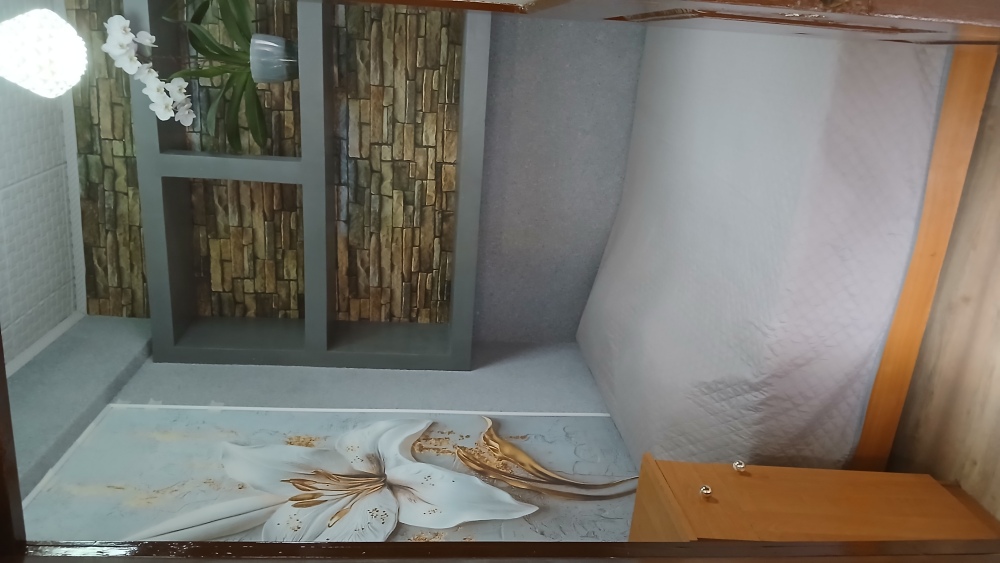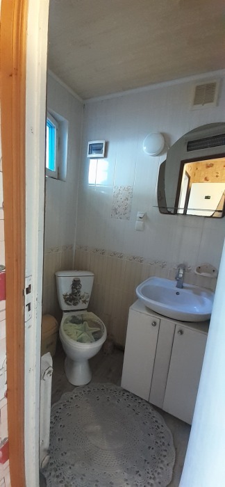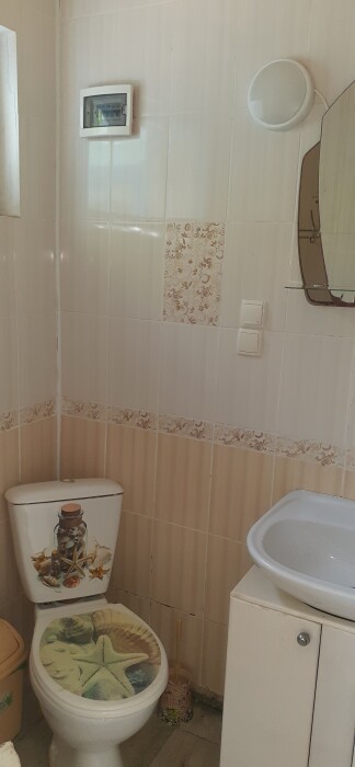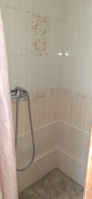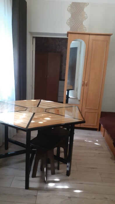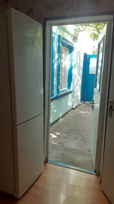 Первая комната - небольшая, 6-8 кв.м. В ней находится комод и две кровати. Вид из окна открывается во двор дома. Вход в комнату отдельный, с прихожей. Вторая комната - зал, 24-26 кв.м. В ней: две кровати (можно сдвинуть), раскладной диван, шифоньер, стол, стулья, телевизор, кондиционер. Вид из окон открывается во двор, на свою беседку (зону отдыха). Вход в комнату - с той же прихожей, откуда и в первую комнату. Третья комната - две кровати (можно сдвинуть), шифоньер, комод. Вид из окна на закрытый двор, на стену. Из этой комнаты можно выйти в зал. А можно - на кухню, из которой можно попасть во двор, в дом можно зайти из двух разных сторон - или с прихожей, или из кухни. В кухне: газовая плита, микроволновая печь, набор посуды, большой холодильник. Рядом санузел. Вода горячая и холодная постоянно за счет накопителя.