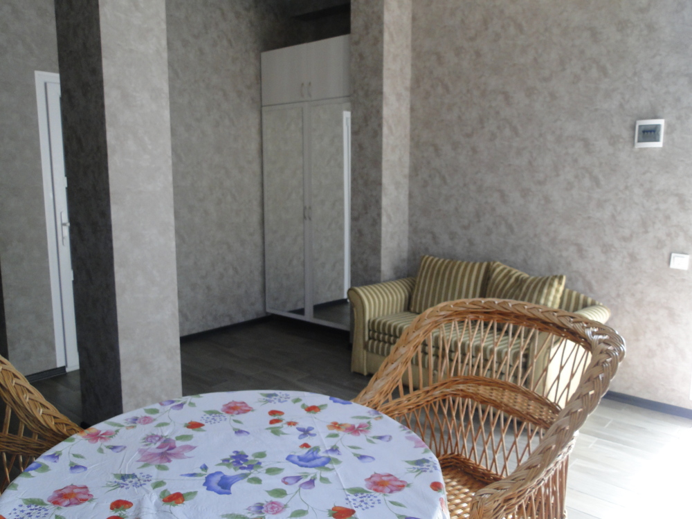 Там же находятся : столовые, кафе, рестораны, продуктовые, винный магазины, рынок, сувенирные лавки. Ближайшая остановка транспорта по городу и за его пределы, сан.«Киев» с круглогодичной лечебной базой расположены в двух минутах от дома.