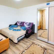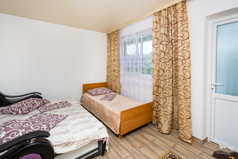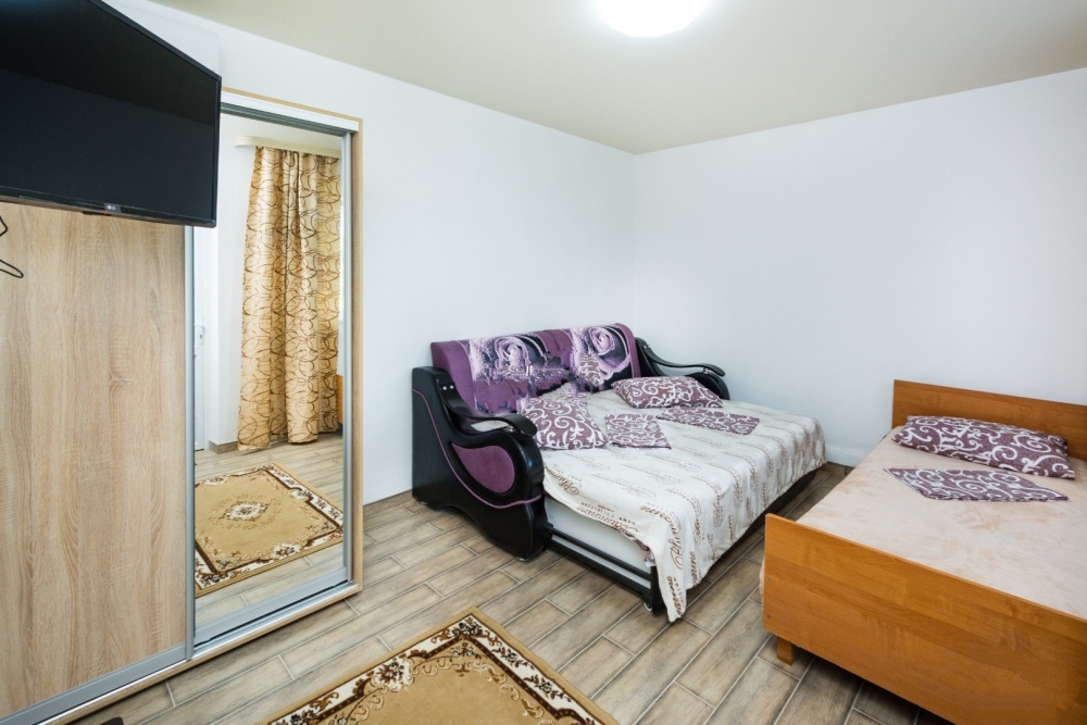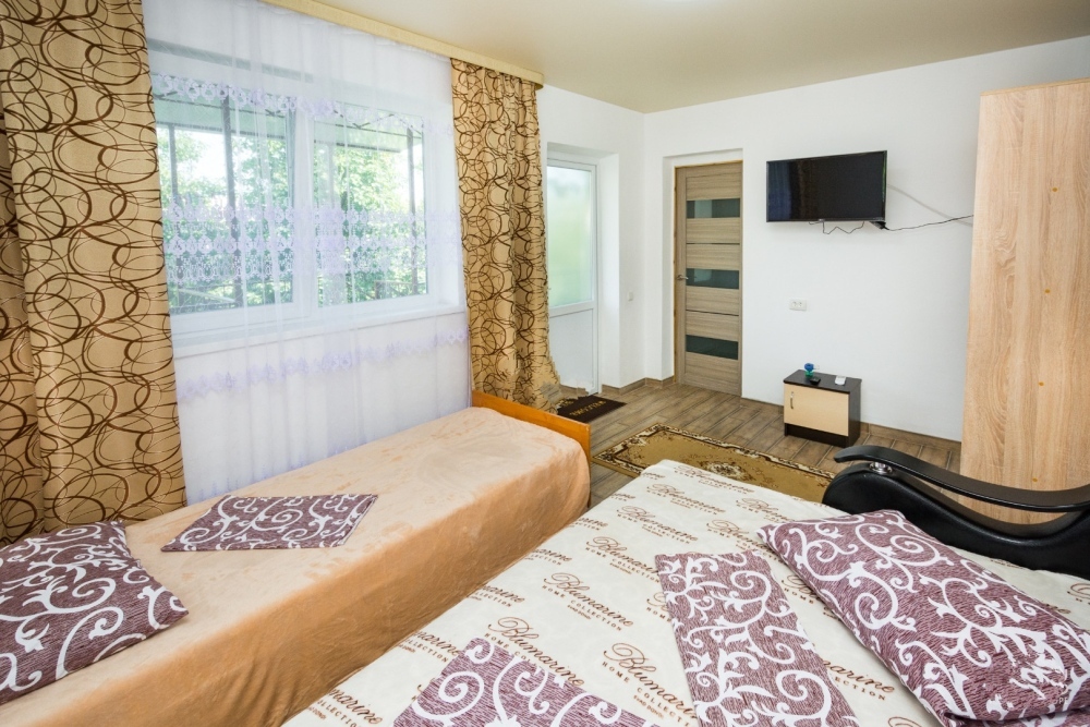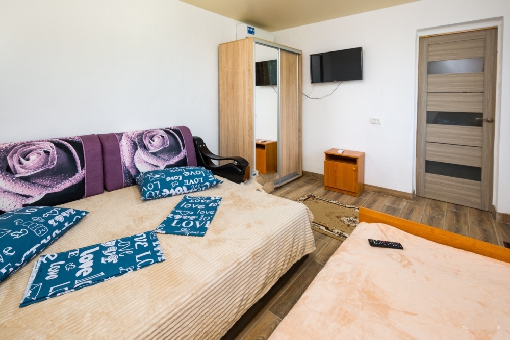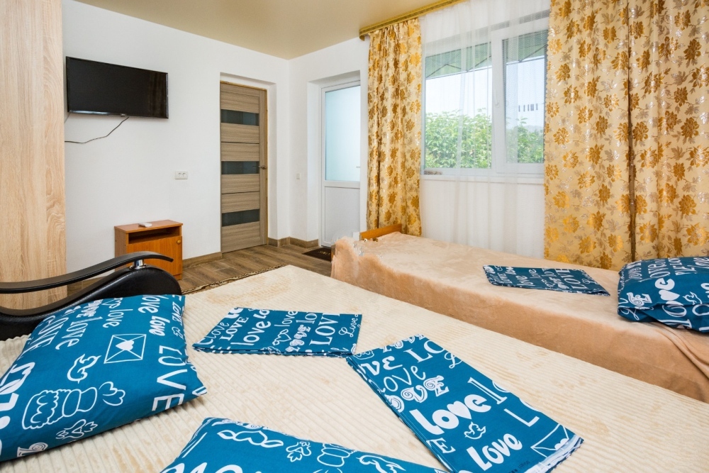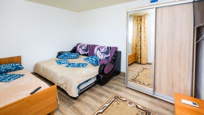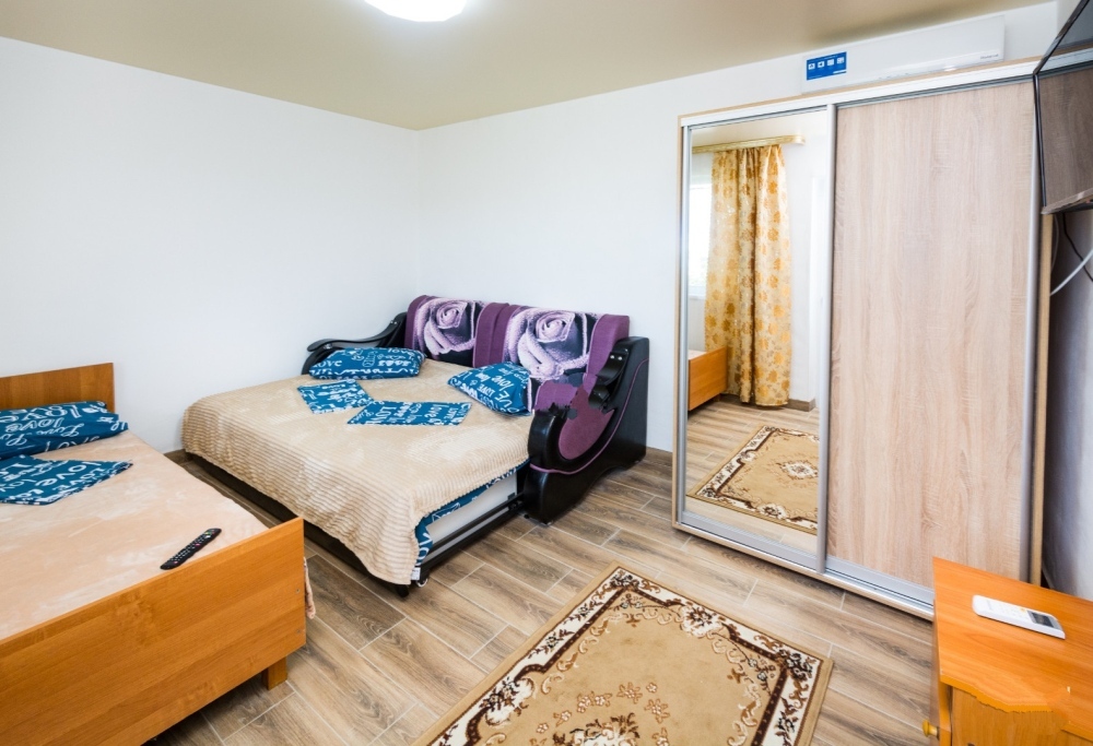 Мы предлагаем 4 комфортных номера. В комнате одна большая кровать, рабочая зона, телевизор, шкаф. В ванной комнате: туалет, бесплатные гигиенические принадлежности: мыло, шампунь, комплект полотенец. Все номера оборудованы кондиционерами. В каждом номере нашего отеля работает бесплатный Wi-Fi. По запросу гостей предоставляется в качестве дополнительной кровати.