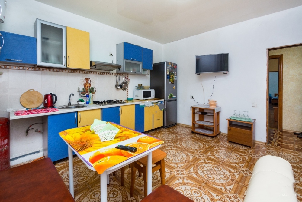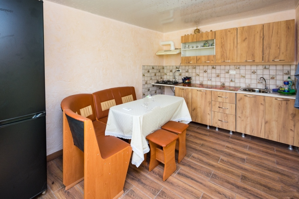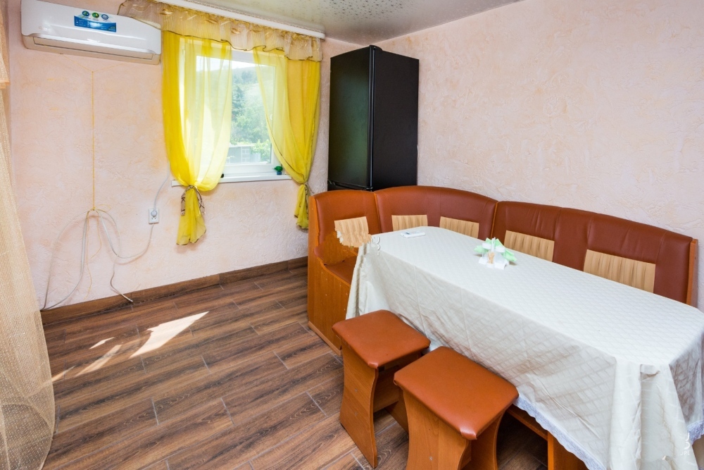 К услугам гостей утюг с гладильной доской. Периодичность смены постельного белья – 1 раз в 3 суток, ежедневно работает прачечная. На территории гостевого дома есть полностью оборудованная кухня с набором посуды.