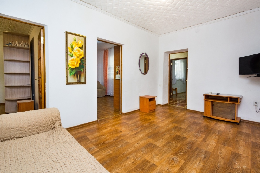 Четыре просторные, большие комнаты, одна гостиная, новая кухня, холодильник, кондиционер.