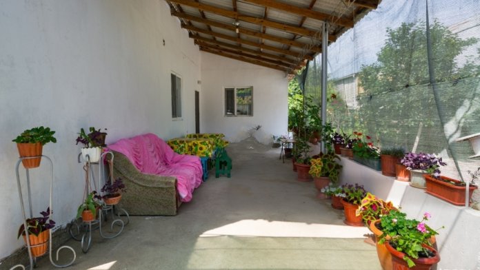 Просторный дворик, где можно посидеть за столиками, пожарить шашлыки (мангал).