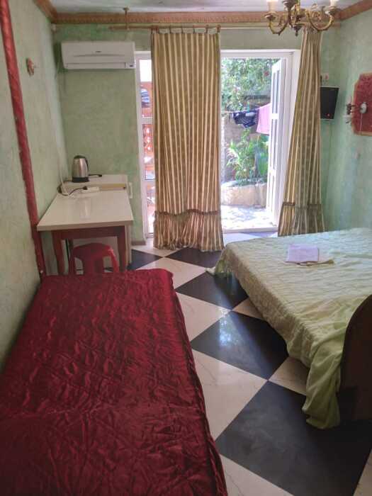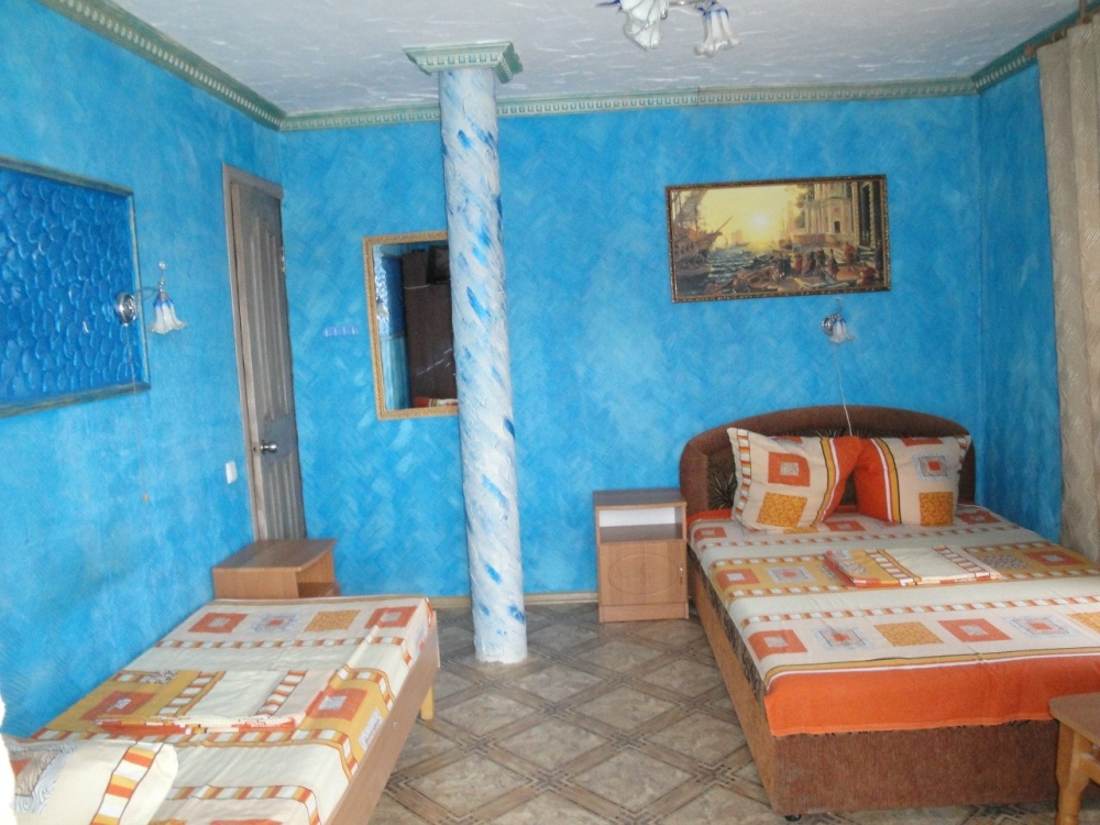 Мы предлагаем комнаты разной вместимости, расположенные на первом и втором этажах дома. В номерах есть телевизор, кондиционер, холодильник, чайник, посуда, шкаф, душ, туалет, холодная и горячая вода без перебоев, есть wi-fi .