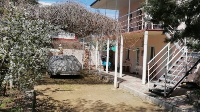 Во дворе мангальная зона. Крытая летняя терраса, зелёный двор, парковка.