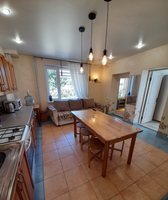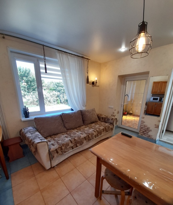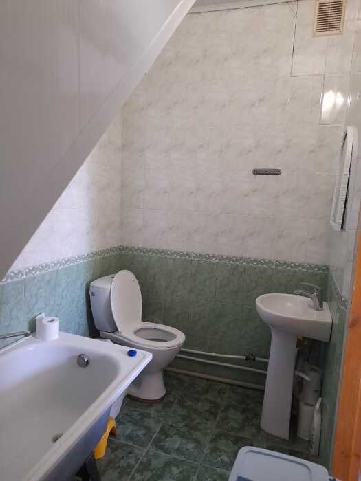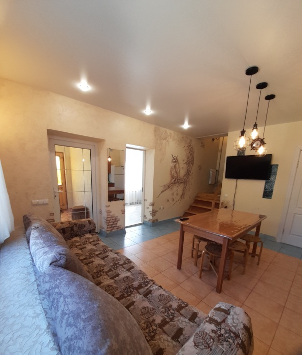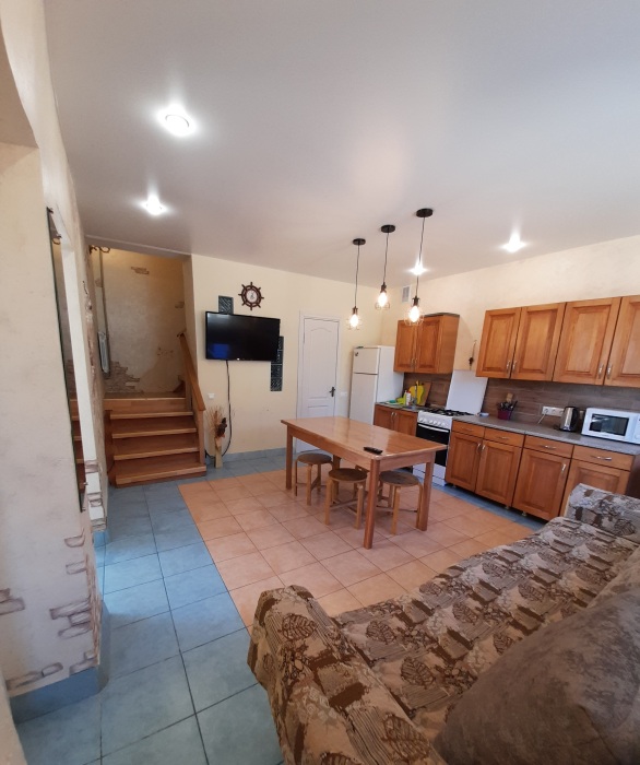 1-й этаж - комната и просторная кухня-гостиная, санузел (ванна) совмещенный.
