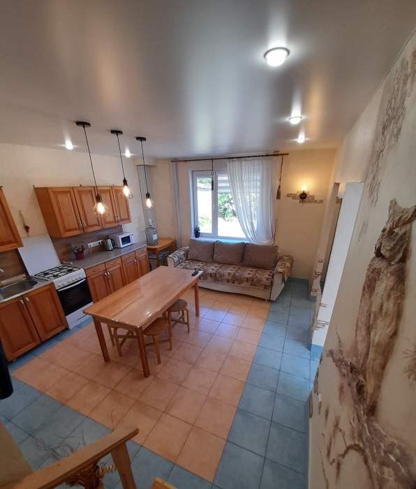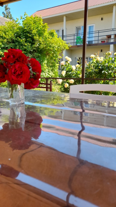 Дом находится в 8 минутах неспешной ходьбы от моря и 8 минутах от магазинов и детских аттракционов в Мирном. Рядом с гостевым домом есть кафе и столовая с домашней кухней.