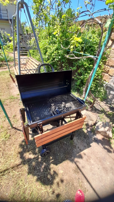 Кухня оснащена газовой плитой, микроволновкой, казан, шампура, решетки для барбекю.