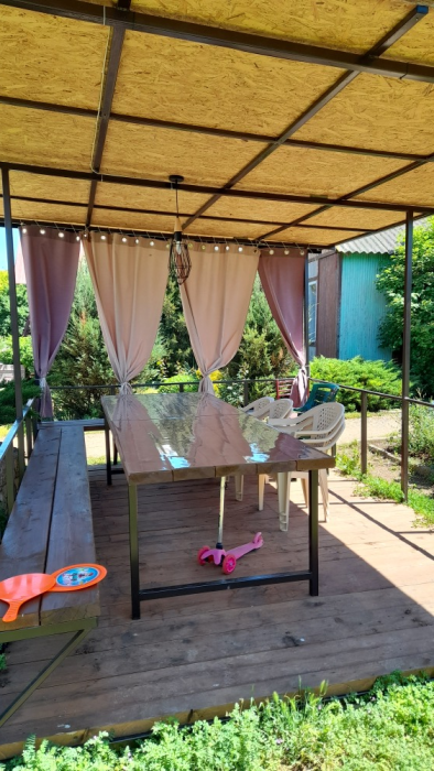 Территория благоустроена, в зелени, есть беседки, мангал, летняя кухня, парковка для авто, детская площадка. Стиральная машинка автомат.
