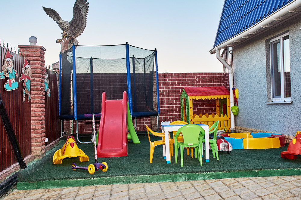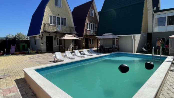 На территории: бассейн 4/8 с детским островком 0,6 м., отдельные беседки с москитной сеткой, для каждого домика, большой мангал, сауна, детская площадка (батут, горка, качели, игрушки).