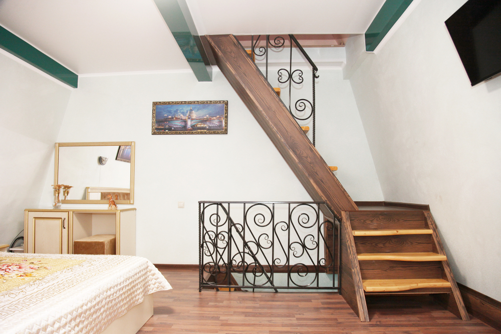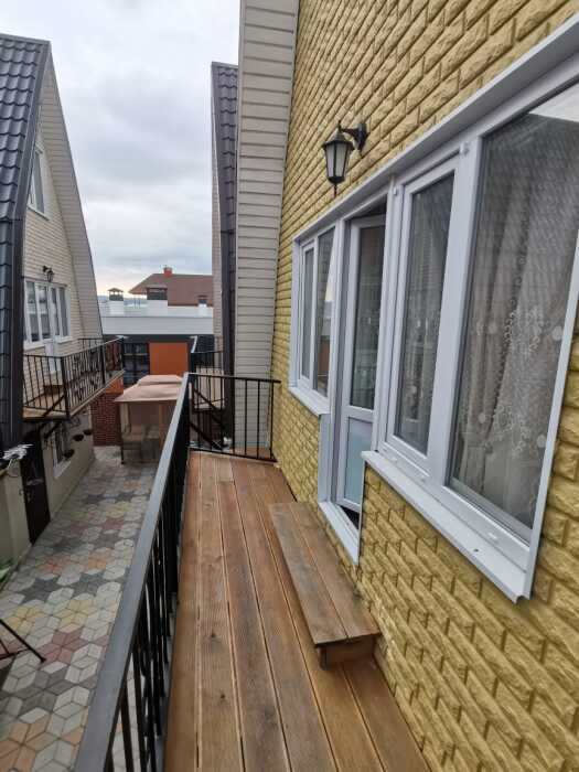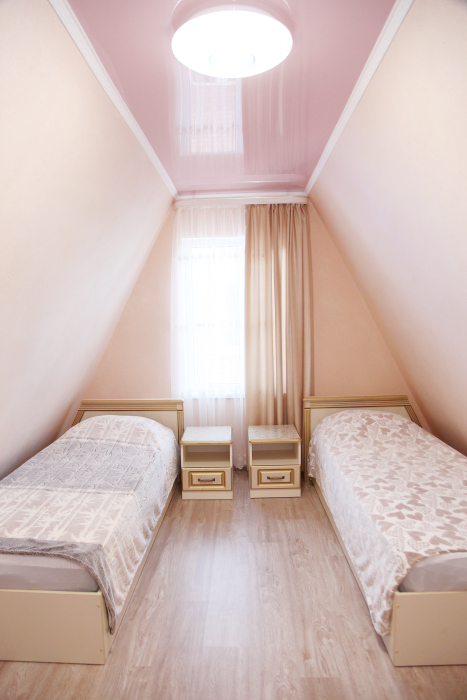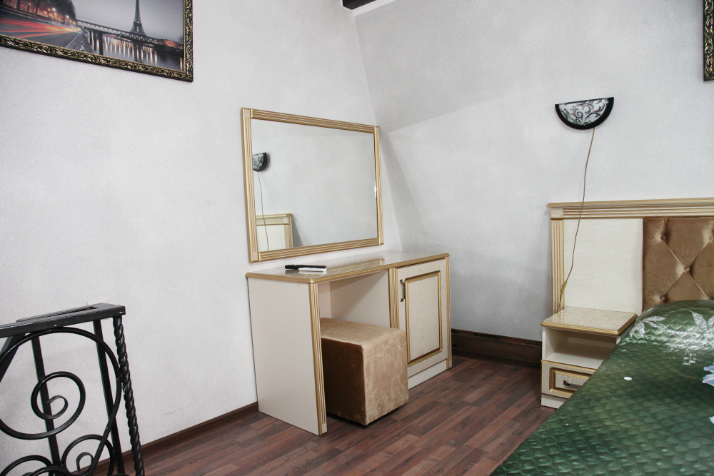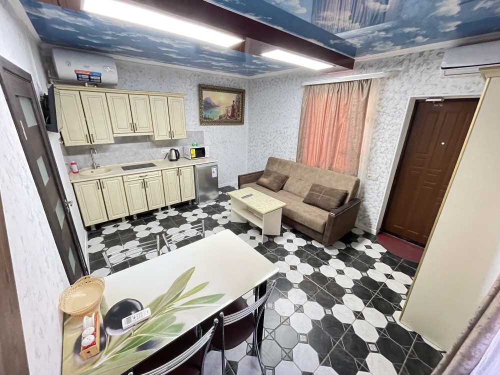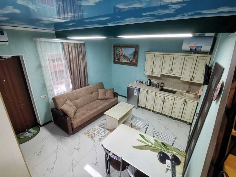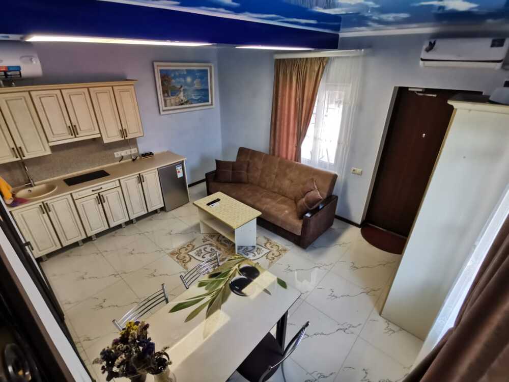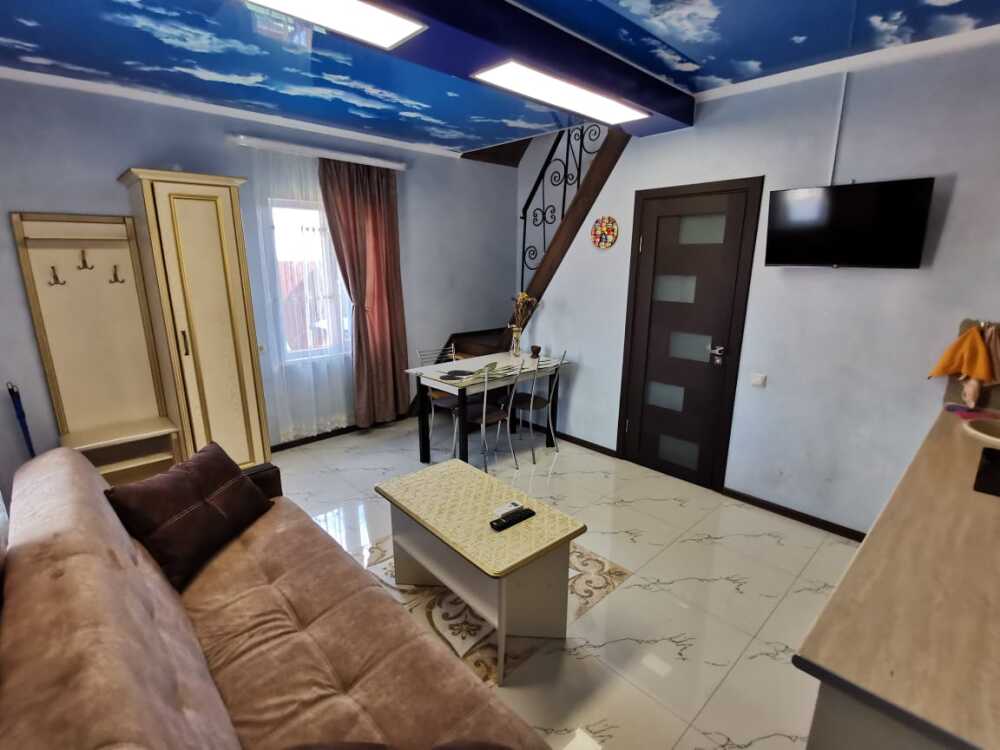 Аппарт-коттедж рассчитан на 6 гостей. Есть возможность размещения 2 доп. мест с доплатой. В каждом коттедже имеется полноценная кухня с посудой, холодильник, TV, спальня с балконом + детская.