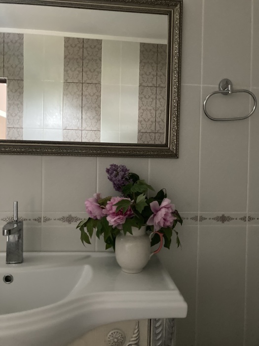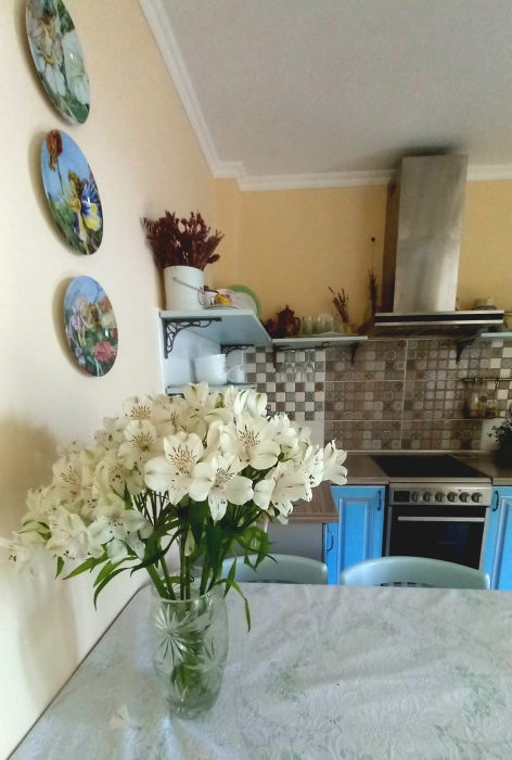 Дом окружен лиственными и хвойными деревьями, чистый воздух и много цветов.
