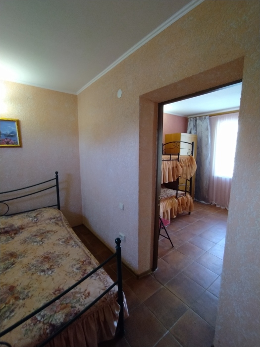 Сдаем часть дома под ключ, рассчитан до 5-ти человек, цена указана за 3 человека, две спальни, сан. узел в доме свой, в отдельно стоящем здании имеется общая кухня оснащена всей необходимой бытовой техникой для самостоятельного приготовления пищи, горячая вода.