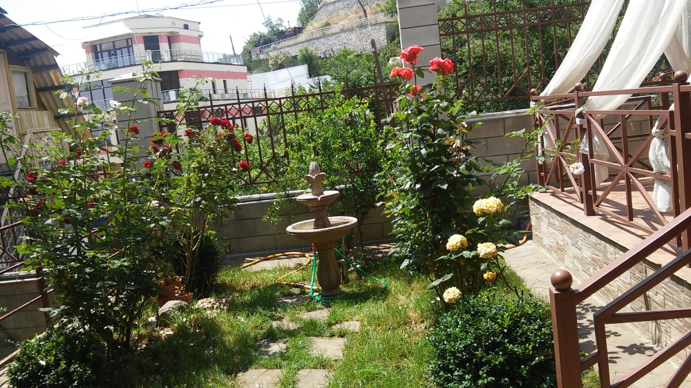 Имеется открытая терраса, защищённая от любопытных глаз, где ваша компания может посидеть за вкусным чаем и насладиться уютной атмосферой вечернего Гурзуфа.