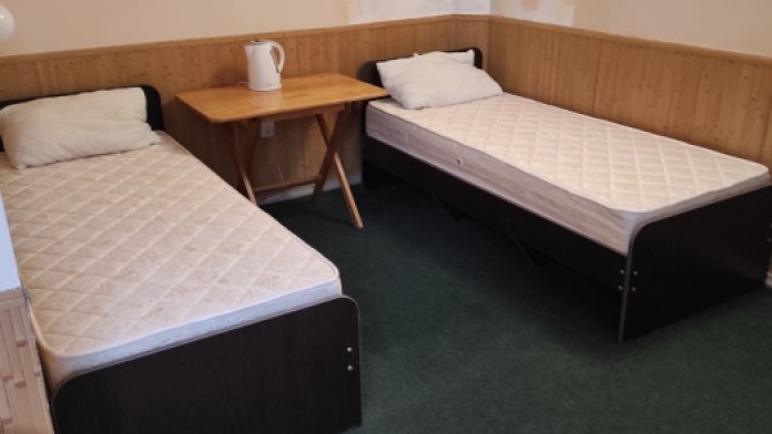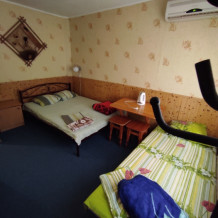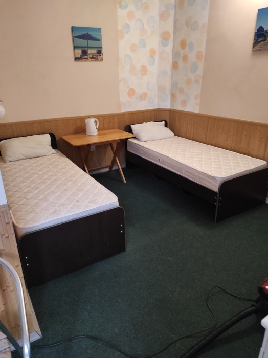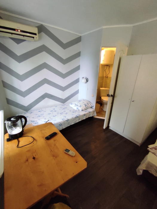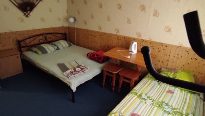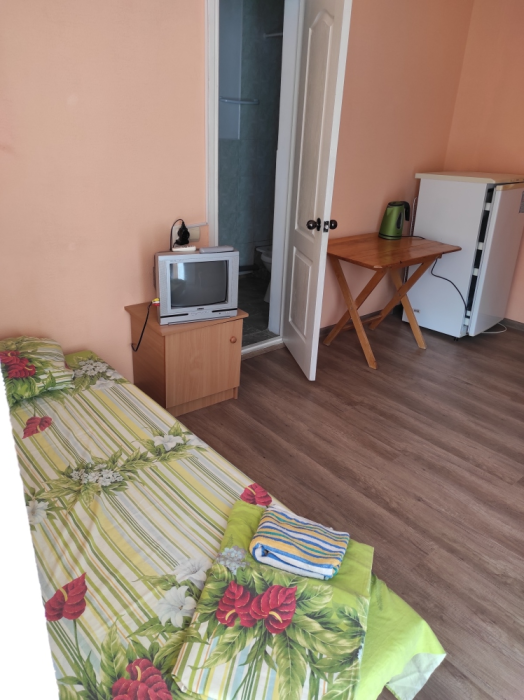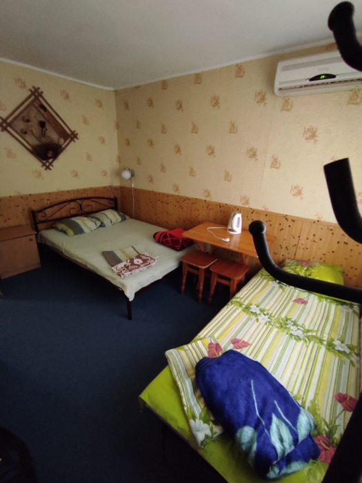 Коттедж с четырьмя номерами и отдельными входами. В каждом номере санузел, кондиционер, холодильник, тв, чайник. Кухня общая.