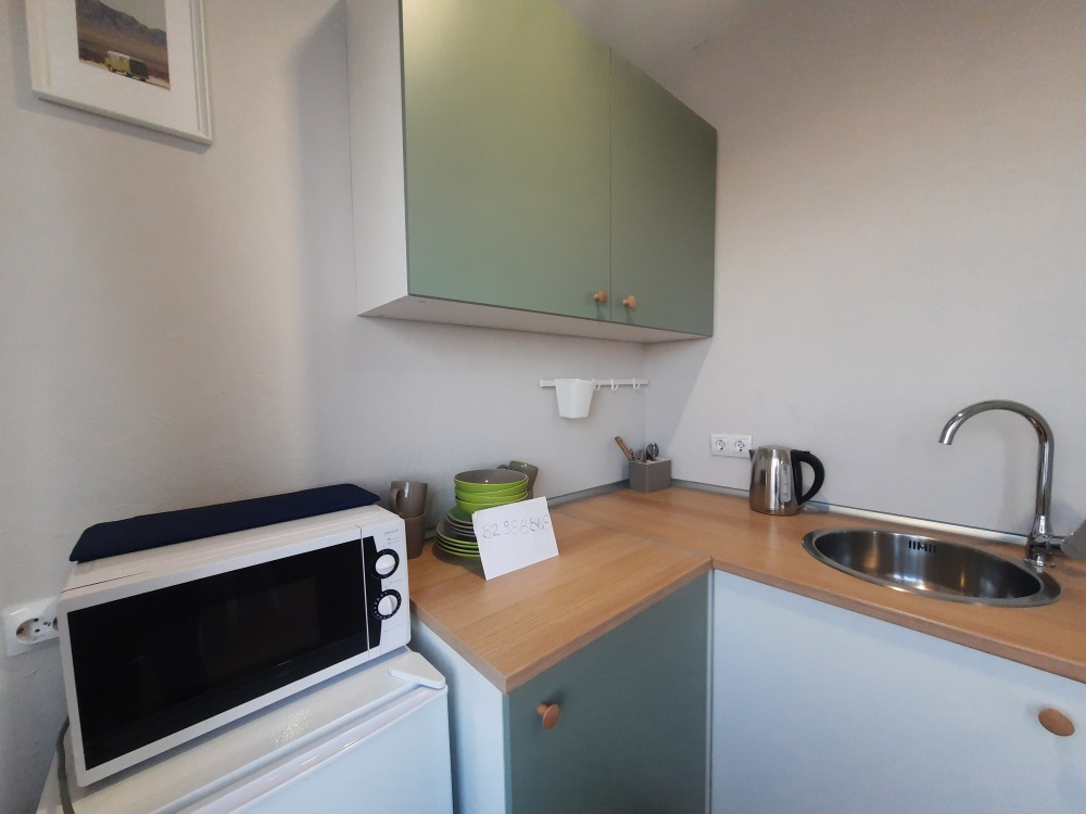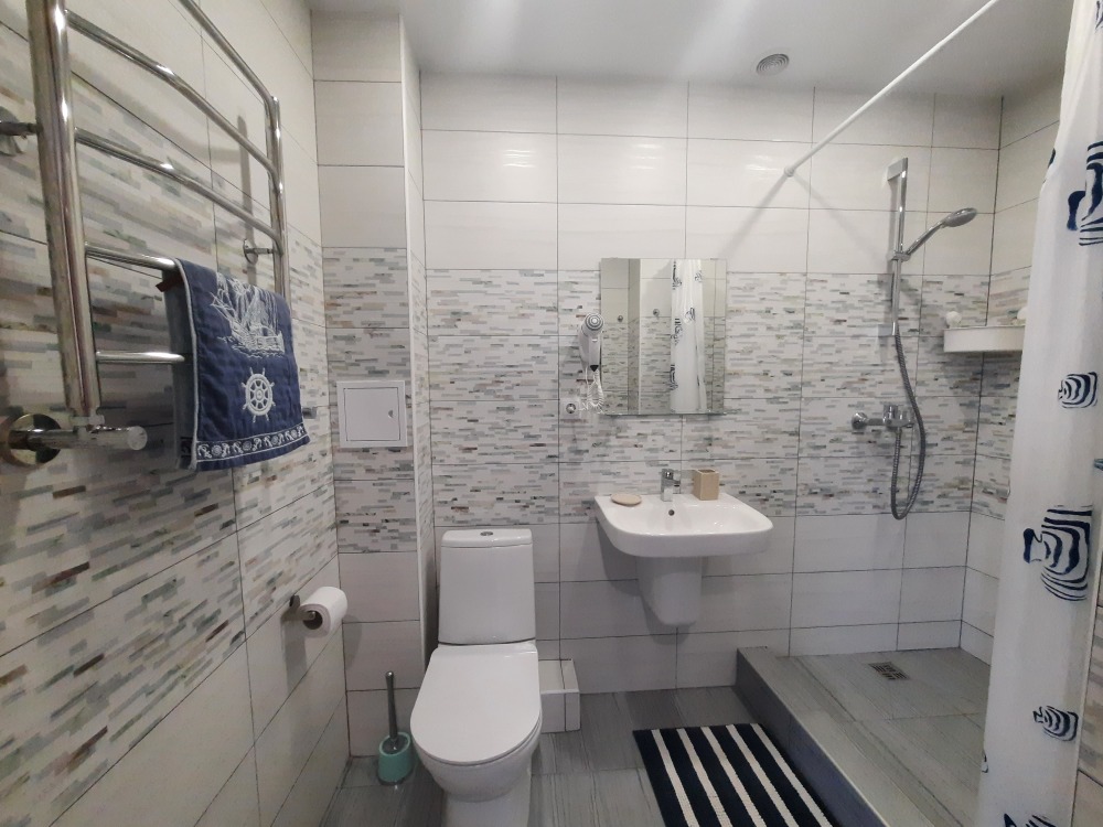Мини-кухня оснащена холодильником, микроволновкой, чайником, мультиваркой, плита индукционная настольная ( по запросу), разнообразная посуда, бокалы и штопор! Санузел с отличным душем, полотенцесушитель, фен и т.д.
